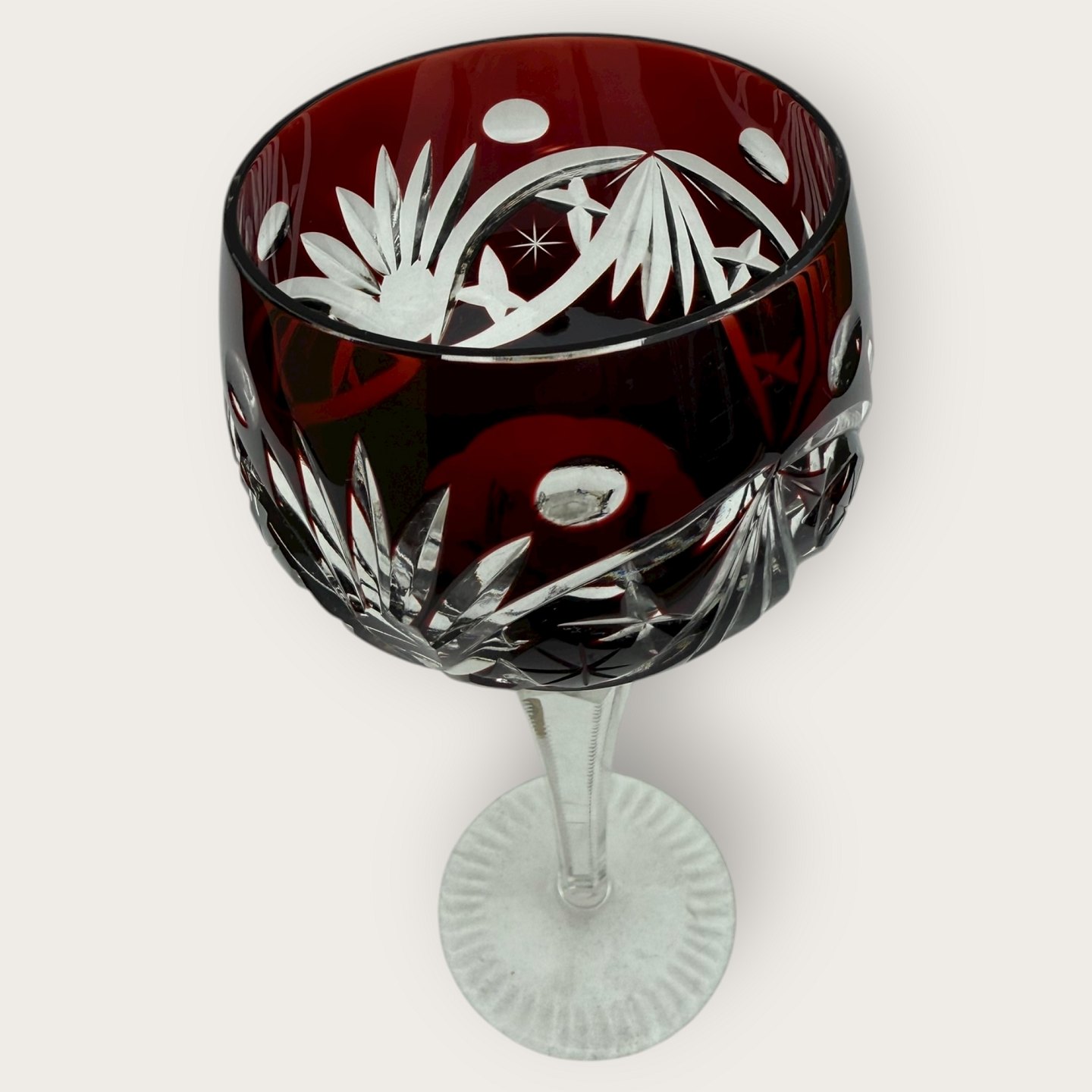 Bohemian crystal glass, Wine glass with cuts, Bordeaux, 19.5cm high, 8.5cm in diameter *Perfect condition*