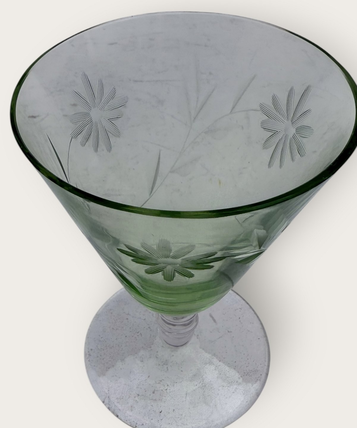Green white wine glasses with flower cuts, Height 10.5cm, diameter 7.5cm *nice condition*