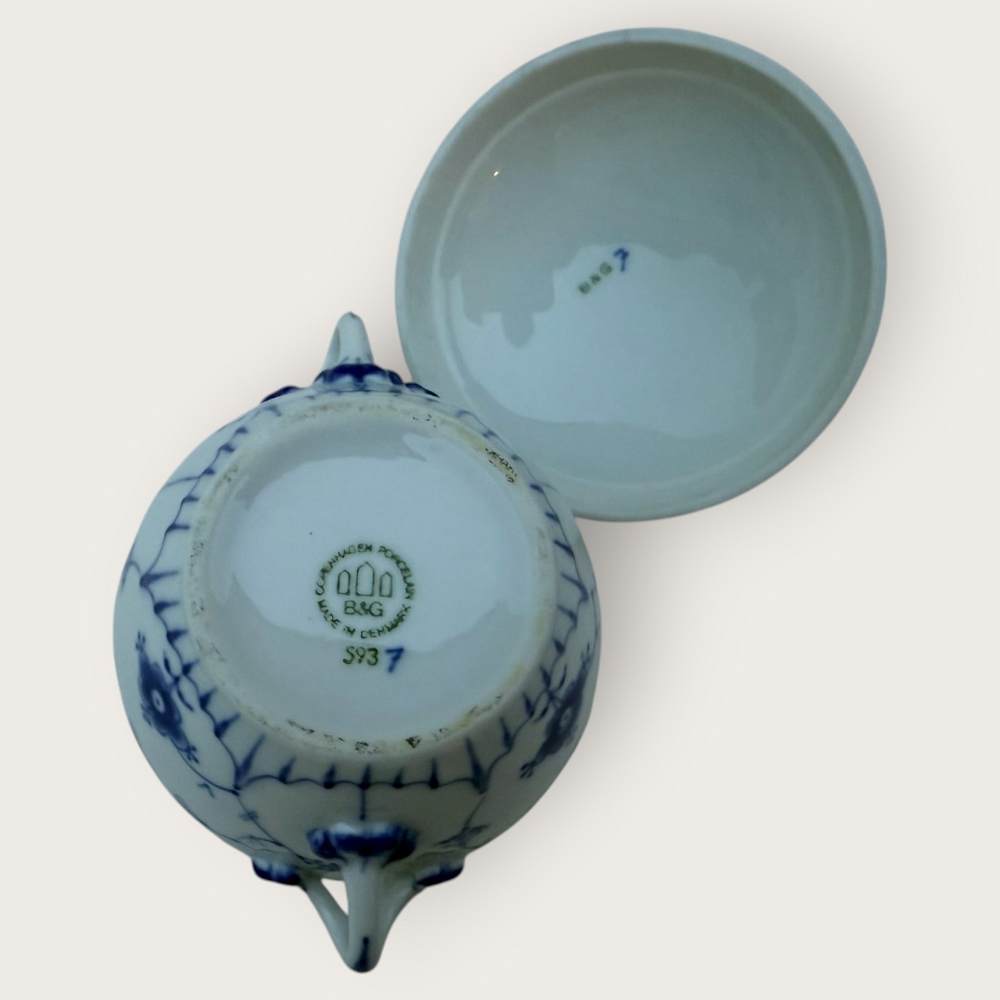 Bing & Grondahl, Blue enamel / Blue Fluted, Sugar bowl #593, 12cm wide, 10cm high, 1st grade, *Perfect condition*