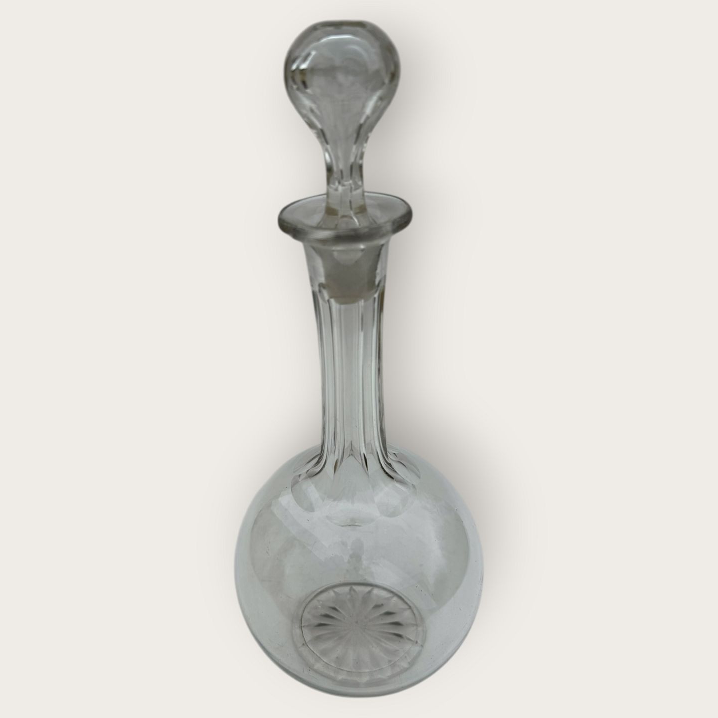 Karaffel med slibninger på hals, 30cm høj og 14cm i diameter, pæn stand