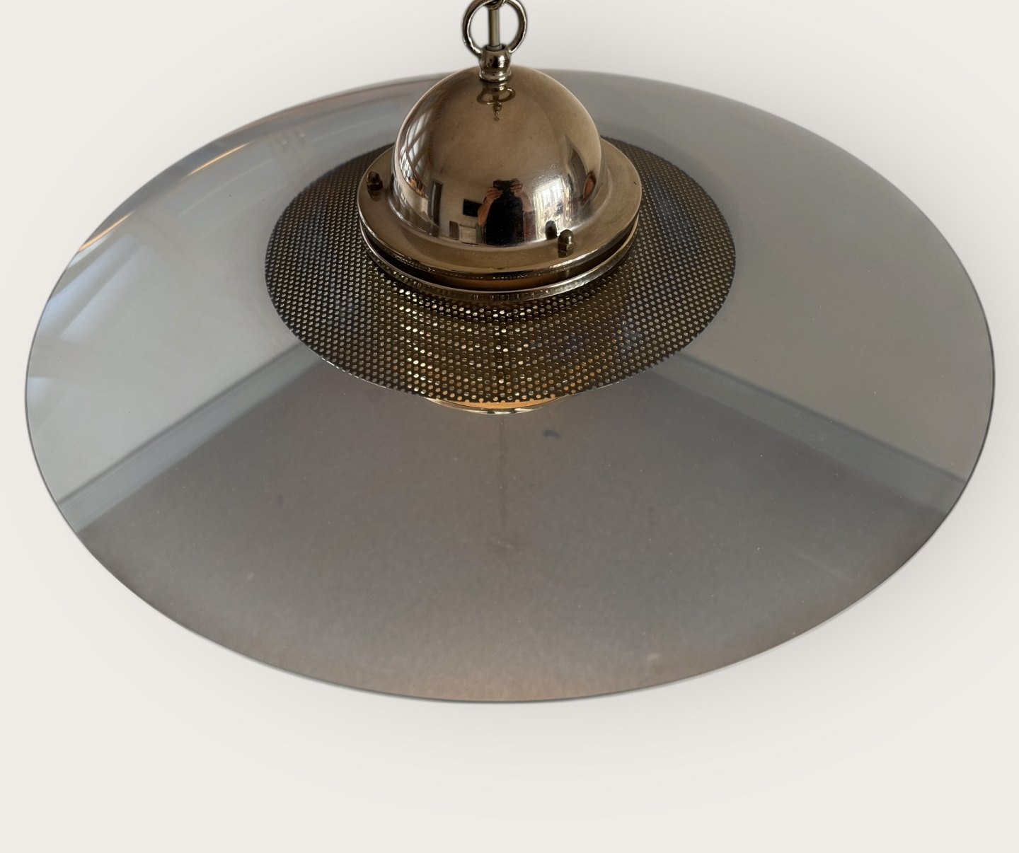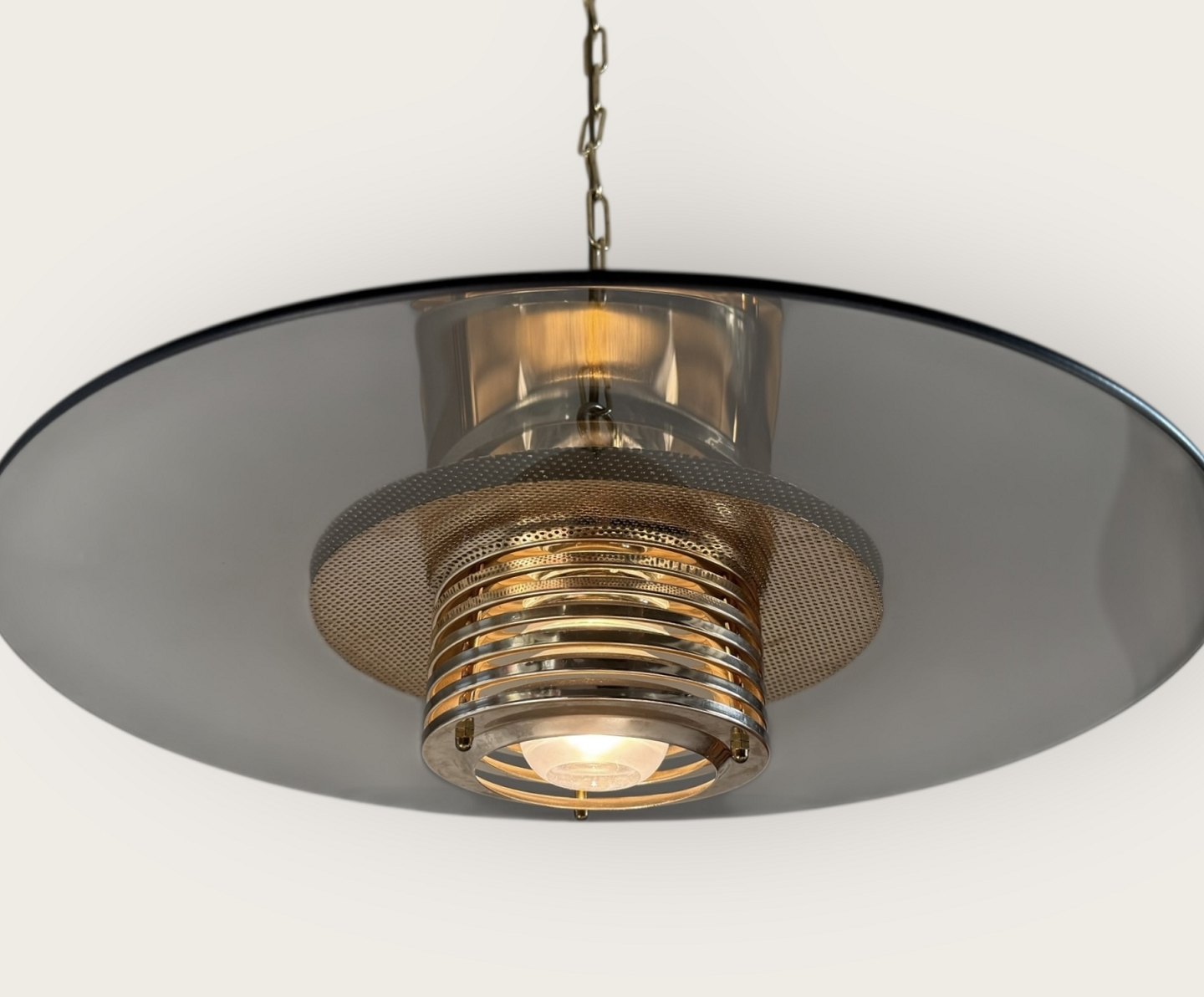 Jan-Eskild Eskildsson, Belid, Sweden, reflector Ceiling lamp in smoked glass and brass, Diameter 49cm *good condition*