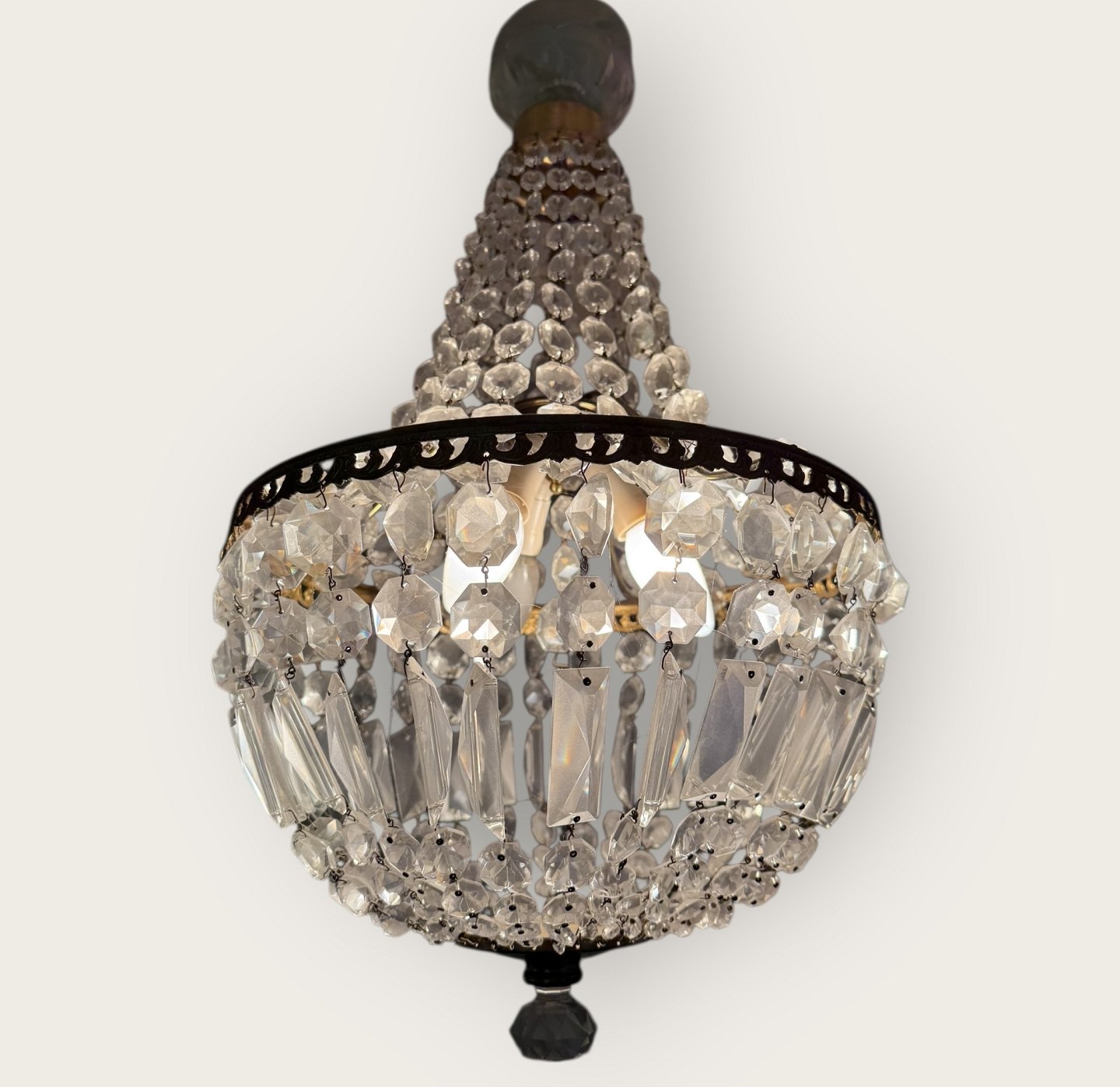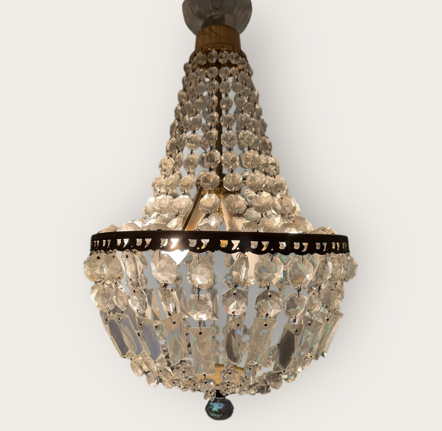 Chandelier with glass prisms, works fine and all prisms are there and in good condition.