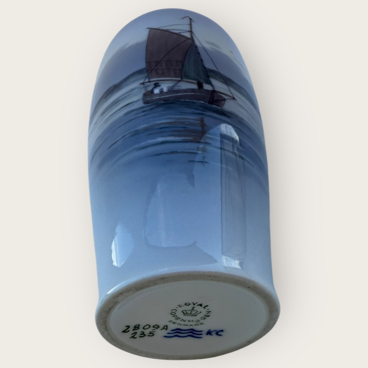 Royal Copenhagen, Vase with fishing boat with sail #2809A/235, 17cm high, 1st grade *Good condition*