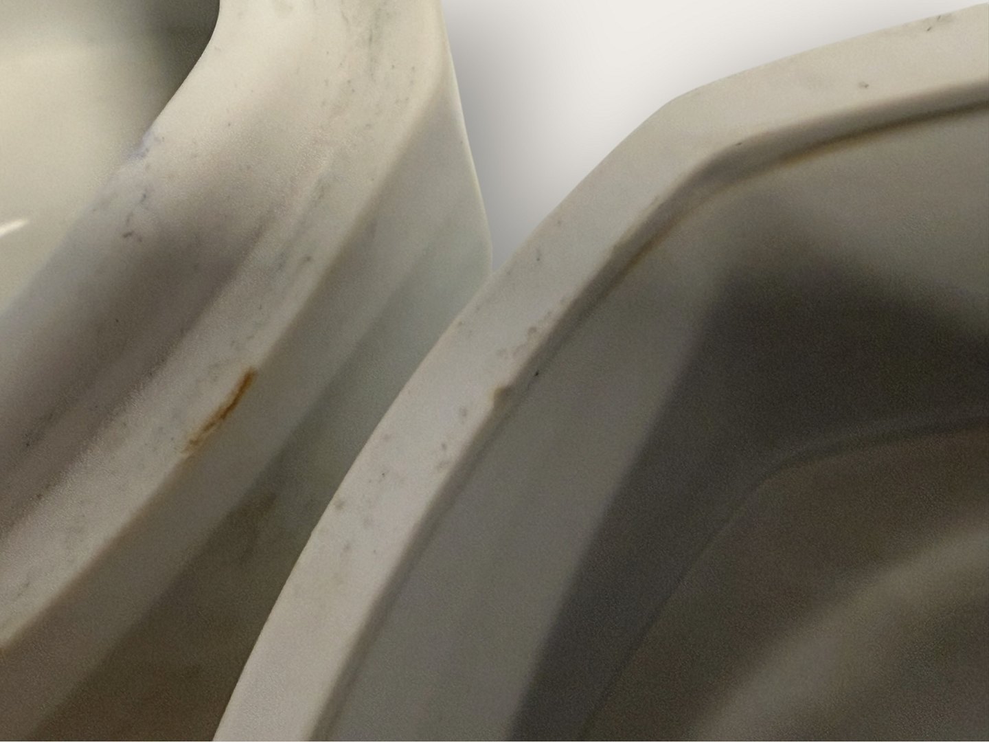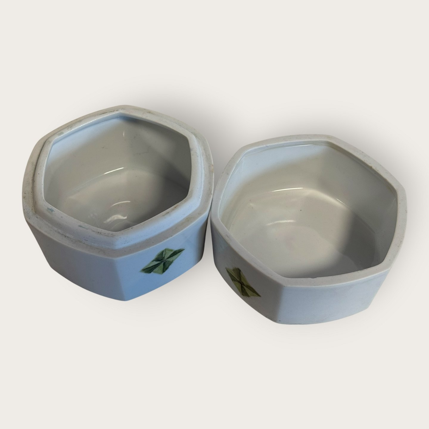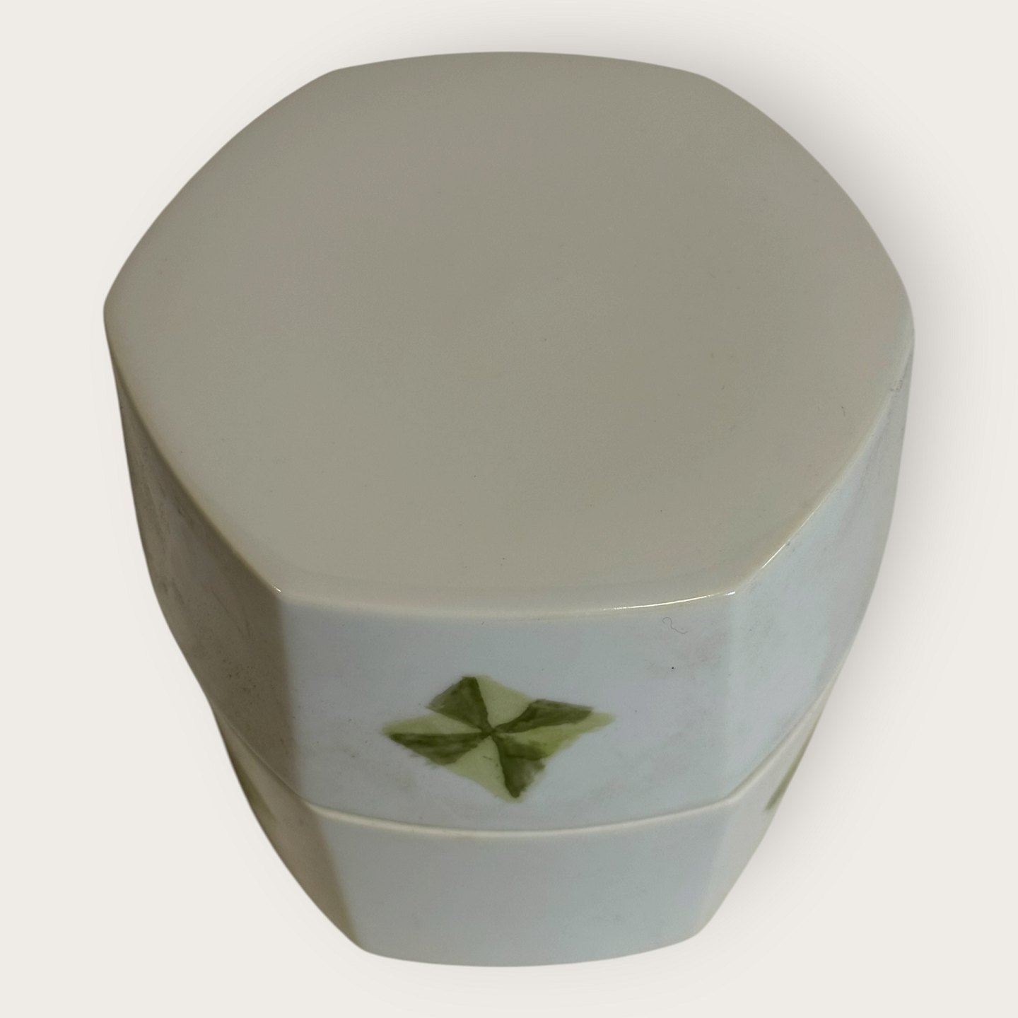Bing & Grondahl, Lidded jar with green decoration, # 5813, approx. 11x11cm, *Some very small scratches on the edge (see photo) otherwise fine condition*