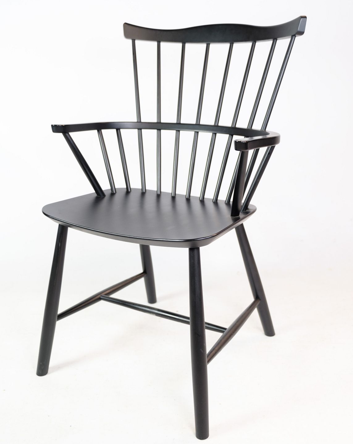 SoldDining table chairs, model J52B, black stained in the wood color beech, manufactured by FDB Møbler.