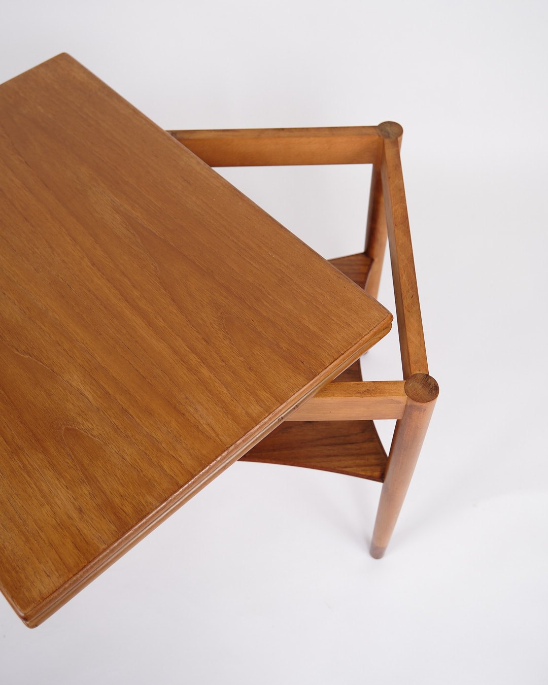 Folding Table designed by Børge Mogensen and produced by Søborg Møbelfabrik in the 1950s. The table is made of teak and beech with fine brass fittings.