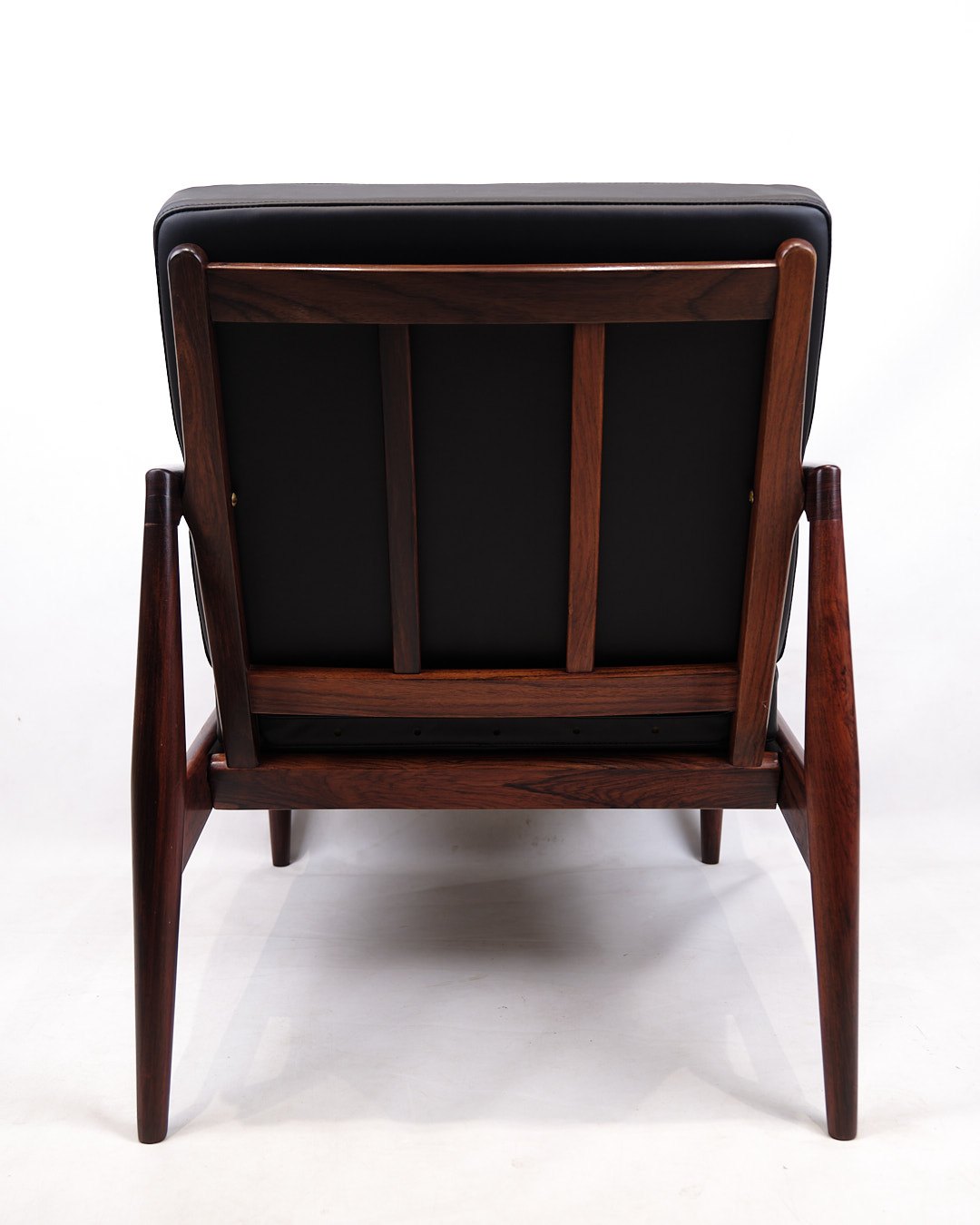 Kai Kristiansen “Paper Knife Chair”, model 121. Rosewood and black leather. Produced by Magnus Olesen, 1950s.