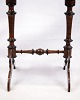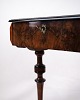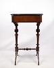 Antique sewing/side table in hand-polished mahogany from the 1890s. With built-in storage and turned legs.