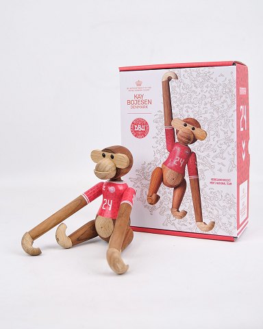 Kay Bojesen monkey, small model in teak and limba. DBU Herrelandsholdet limited edition. Classic Danish design icon.