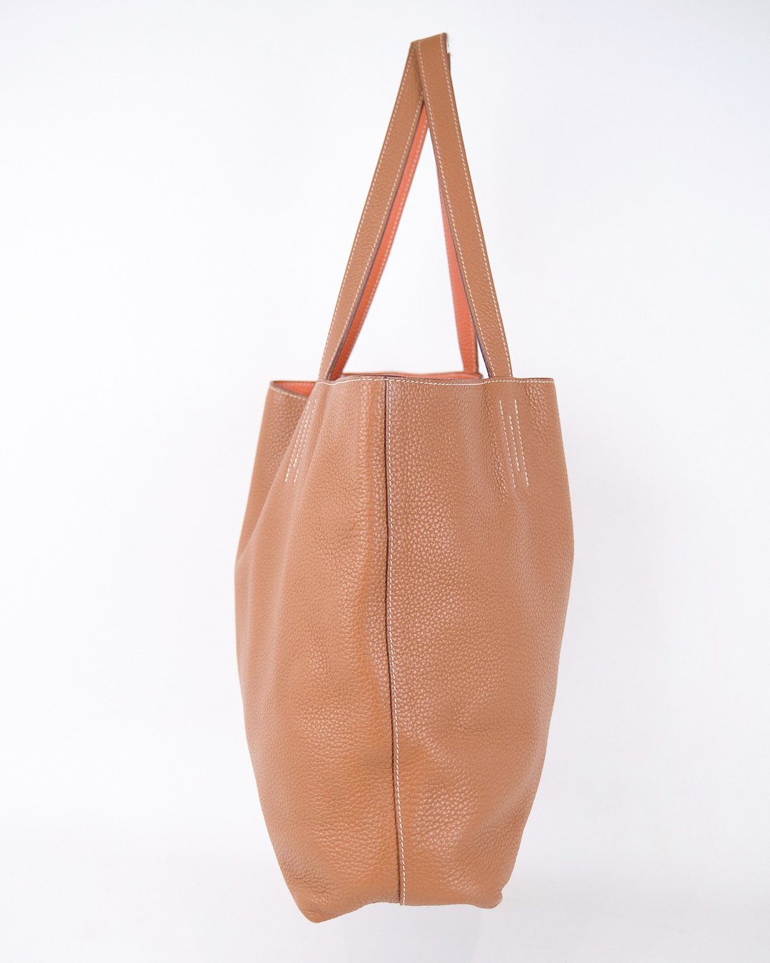 Hermès Double Sens 36 Tote in reversible Taurillon Clémence leather. Colors: Gold & Orange Poppy. Exclusive French design and craftsmanship.