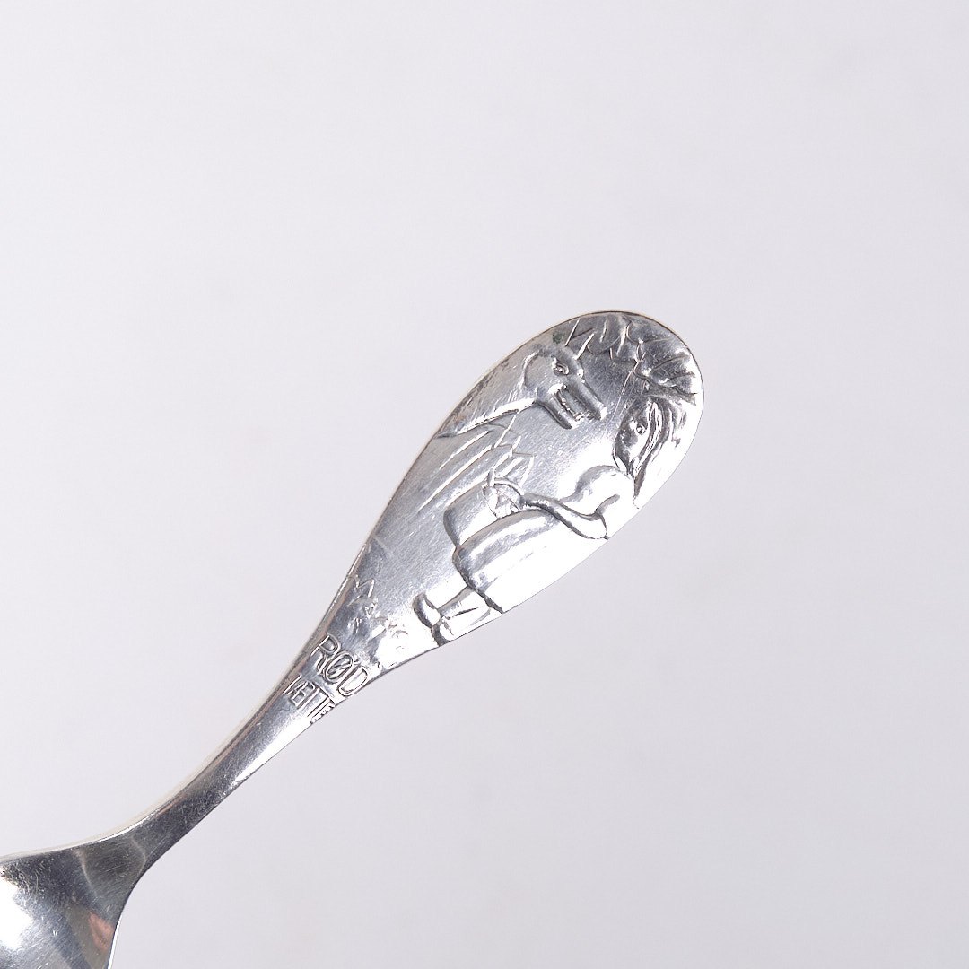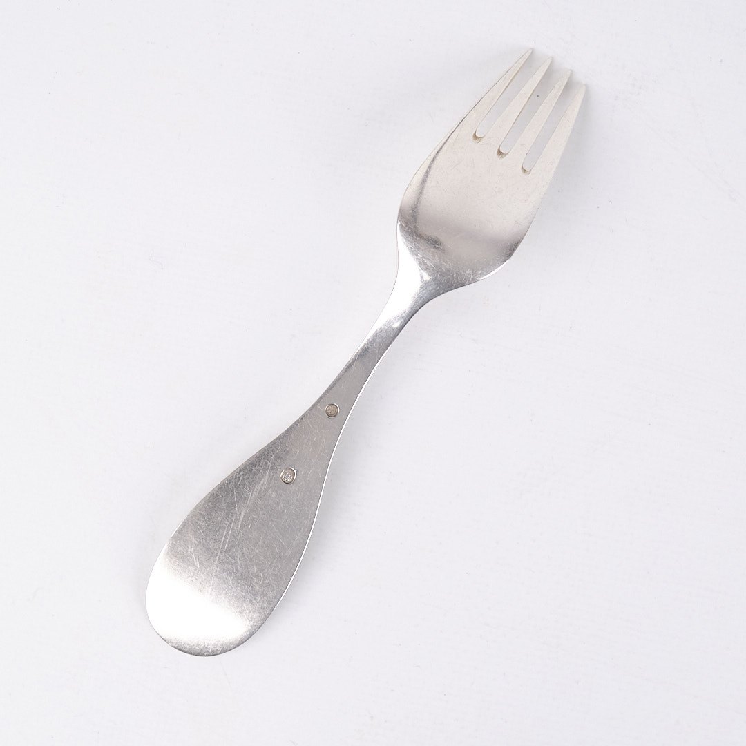 Children's fork in three-towered silver with motif of “Little Red Riding Hood”. Hallmarked. Classic Danish silver design.