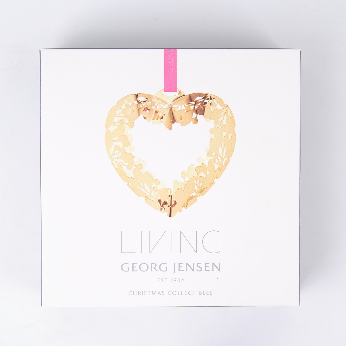 Georg Jensen Christmas Euro 2015. Heart plated with 24 kt. gold. H: 9 cm, W: 9 cm. Classic Danish Christmas decoration and collector's item.