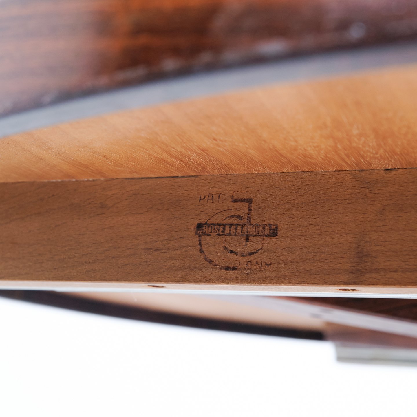 Round dining table in rosewood by C.J. Rosengaarden. Danish design from the 1960s. Extension with two leaves of 50 cm.