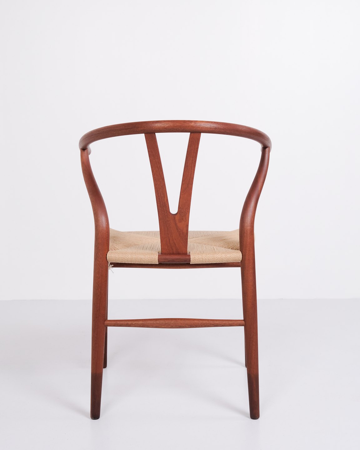 Set of four Hans J. Wegner Wishbone-chairs, model CH24. Mahogany with natural wicker. Carl Hansen & Søn.