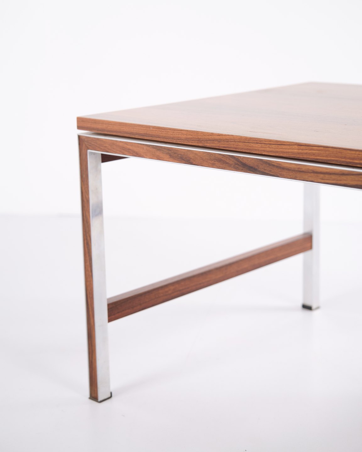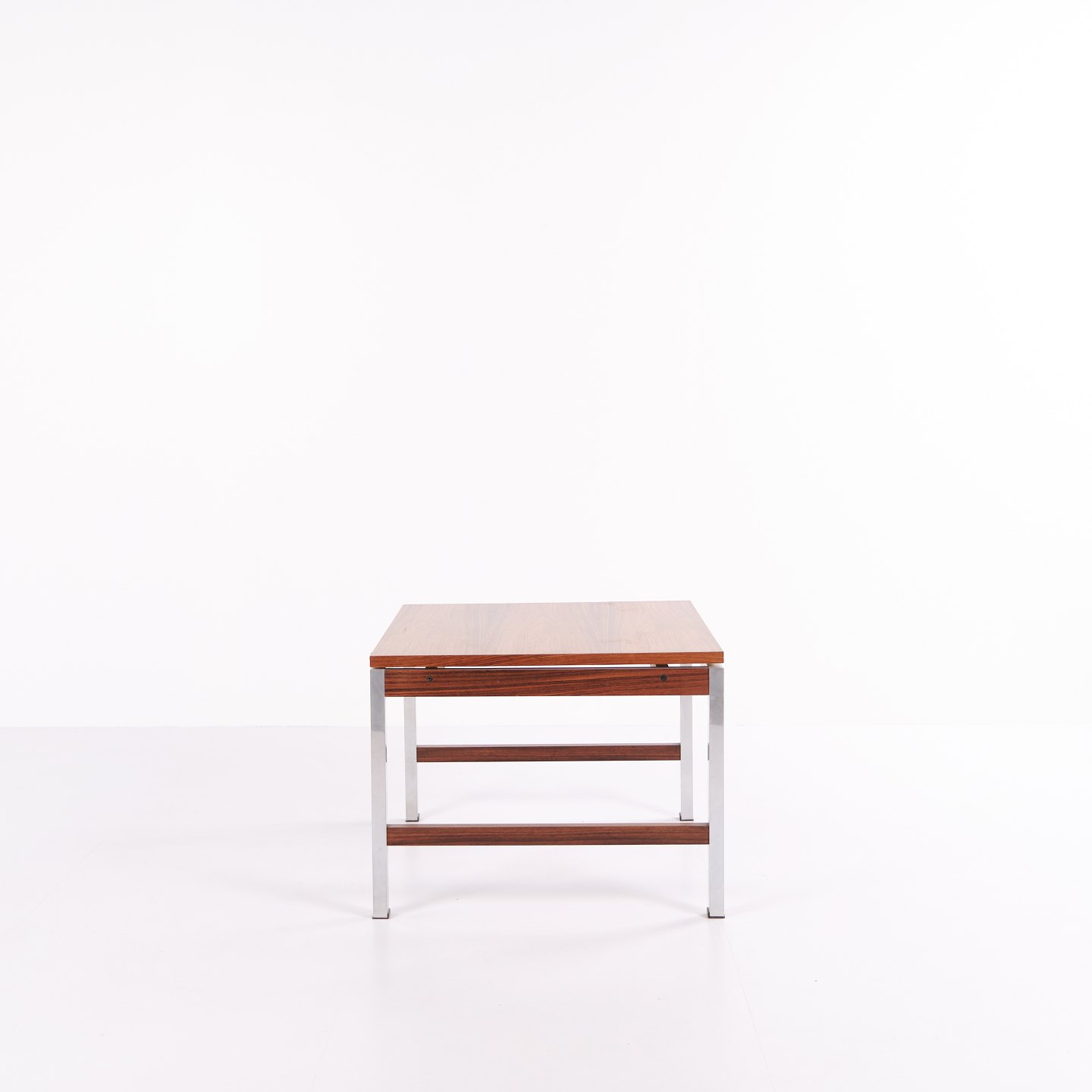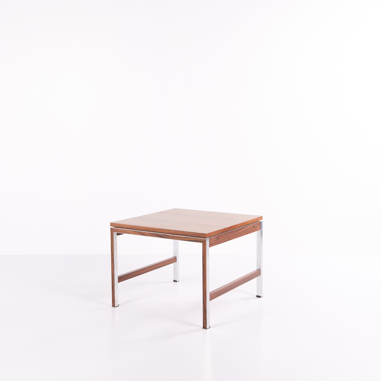 Side or lamp table from the 1960s, made of rosewood with aluminium details. Classic Danish design suitable as a coffee table, lamp table or bedside table.