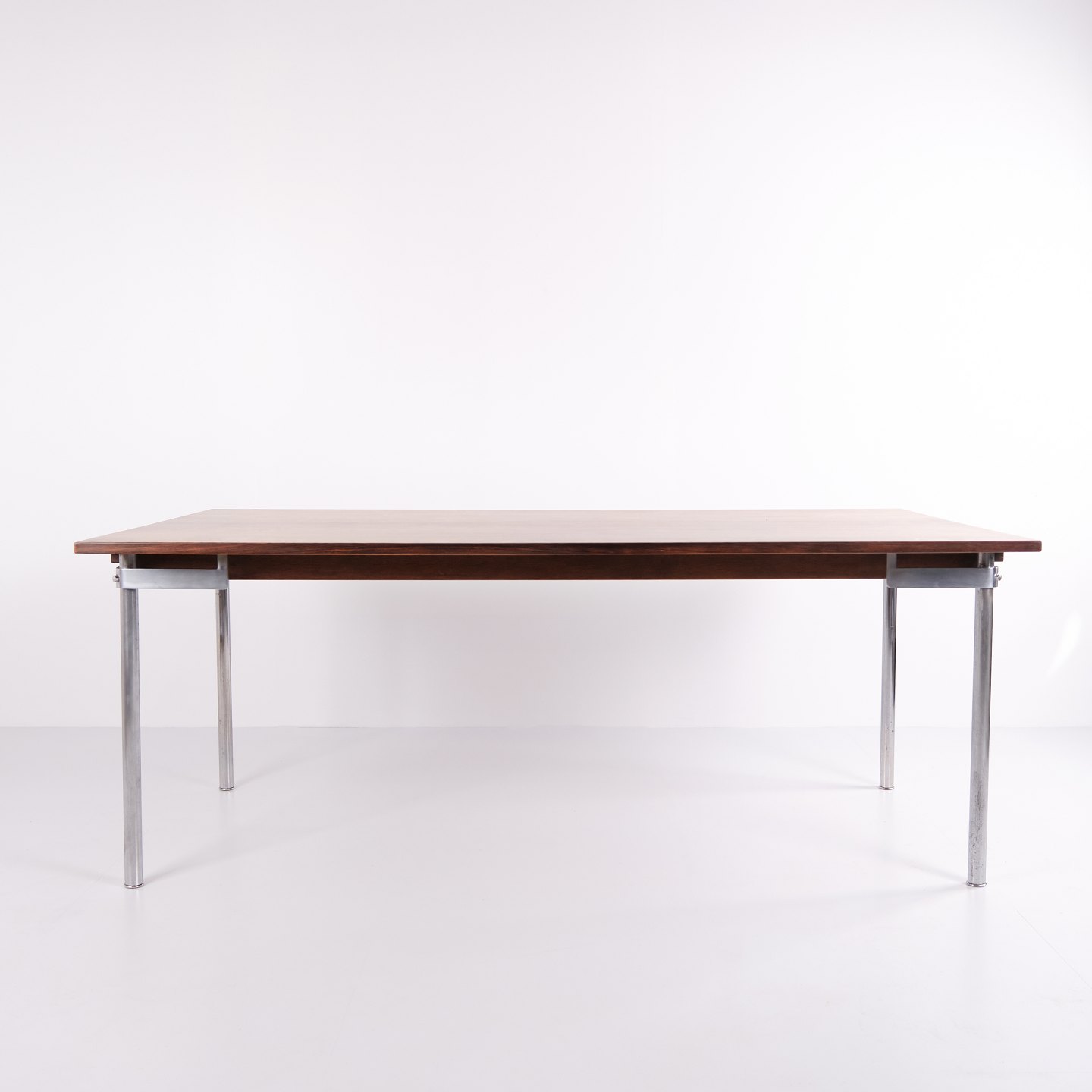 Dining table model AT 319 by Hans J. Wegner for Andreas Tuck. Rio rosewood with steel legs and 2 extension leaves. Danish design from the 1960s.