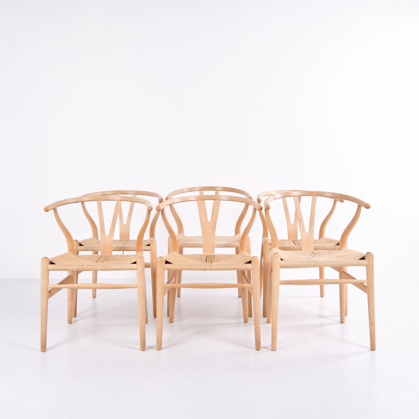 Set of six CH24 Y-Chairs by Hans J. Wegner for Carl Hansen & Søn. Beech and natural cord. Danish design from the 1970s.