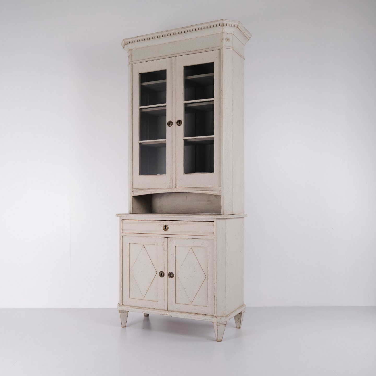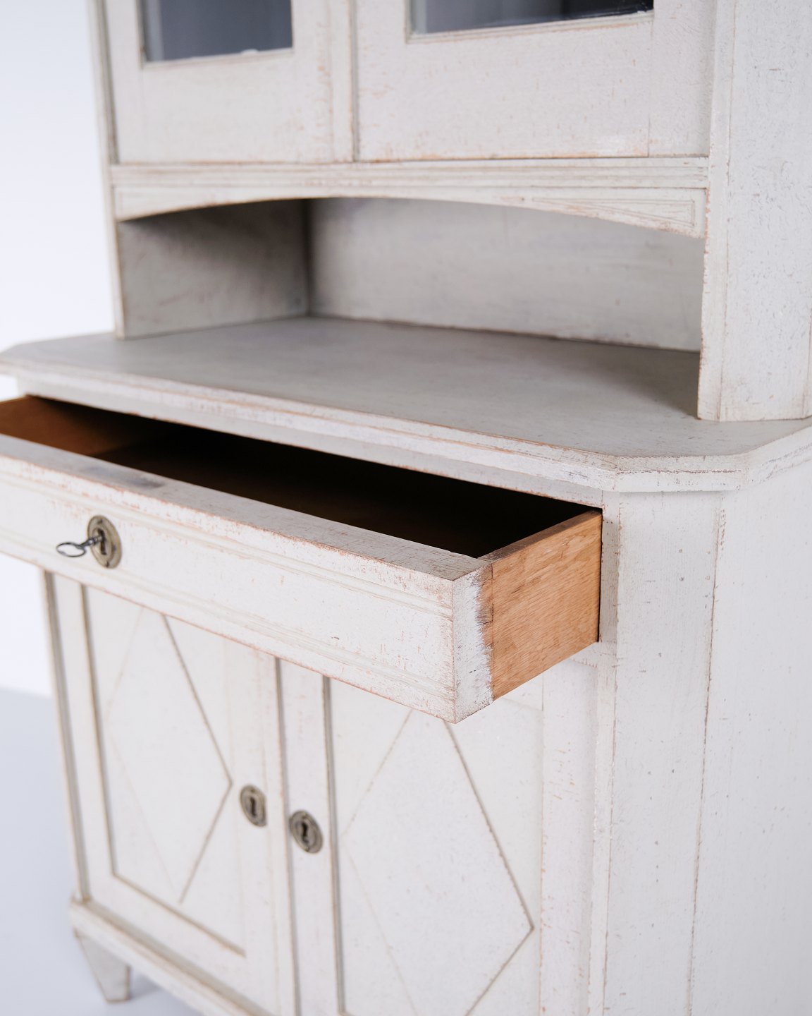 Large Swedish display cabinet from the Gustavian period, circa 1790s. Glass doors, shelves and drawer.