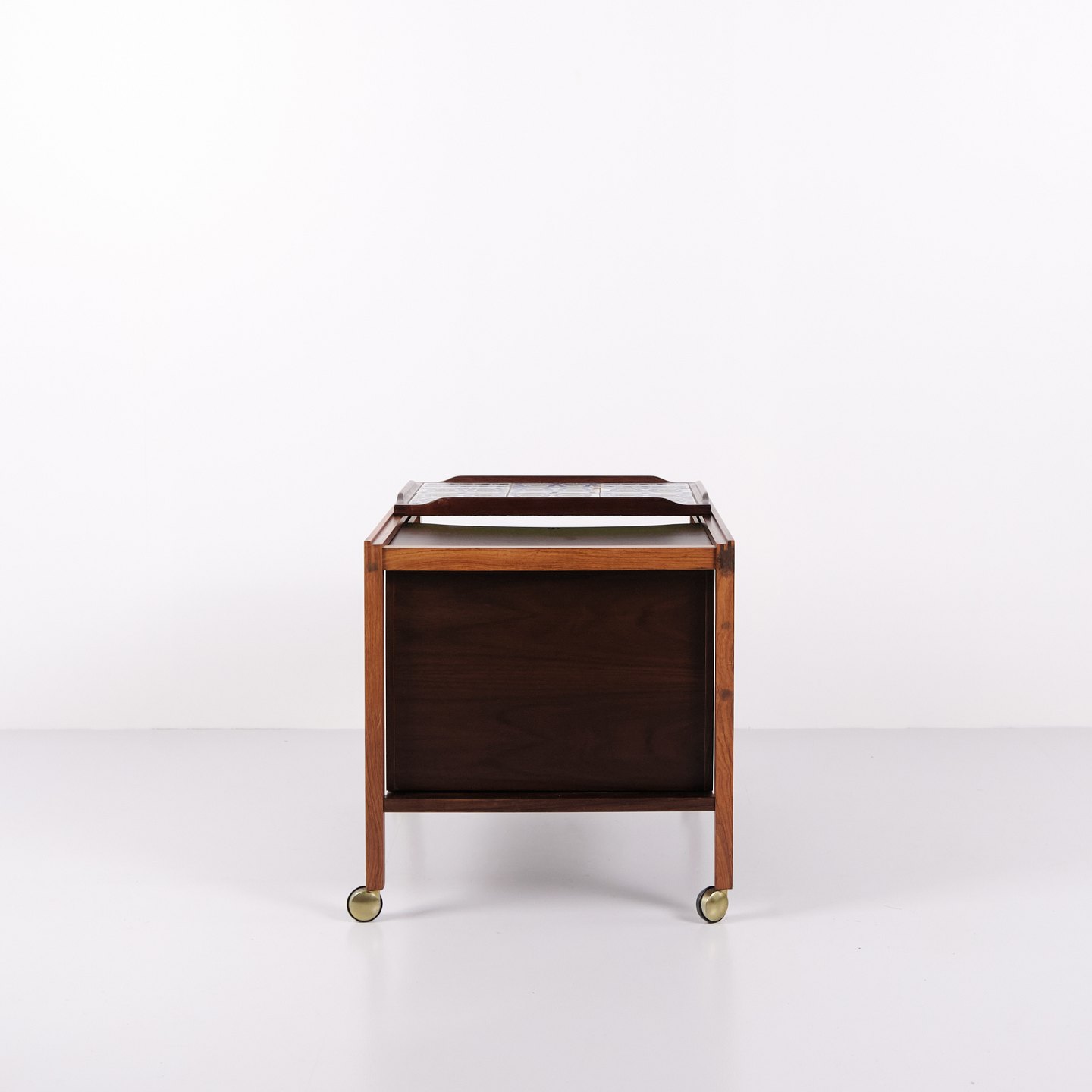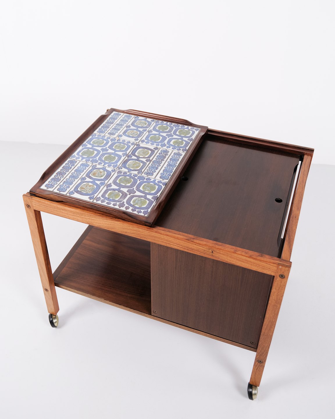 Bar cart in rosewood designed by Severin Hansen with tiles from Royal Copenhagen. Classic Danish design from the 1960s with an elegant appearance.