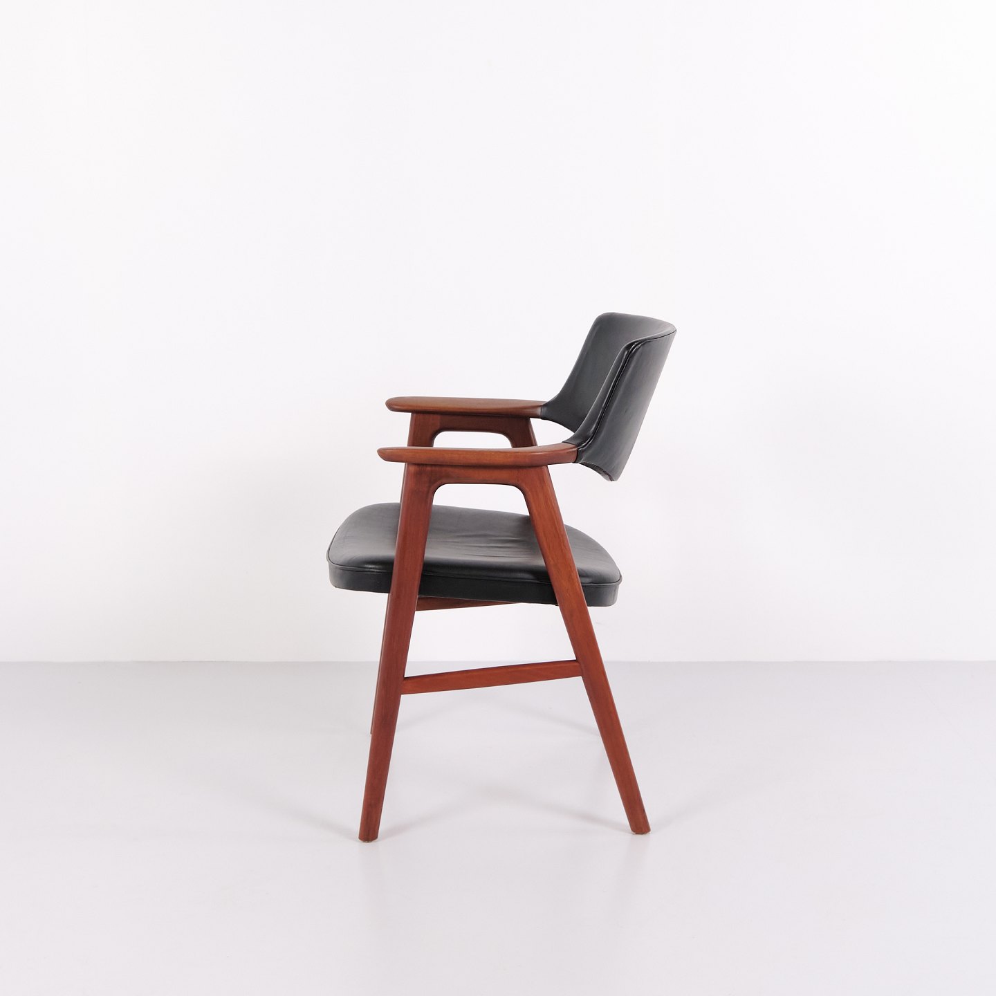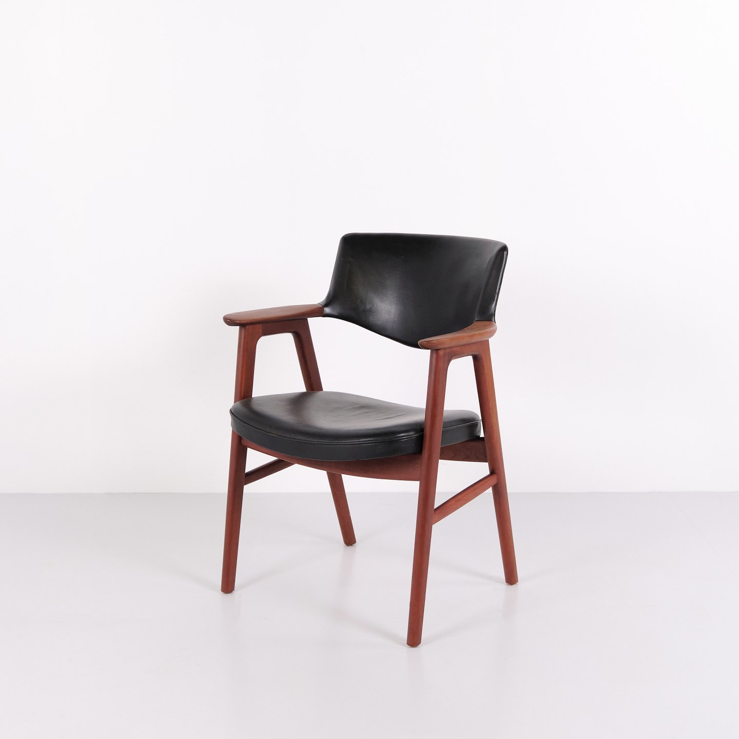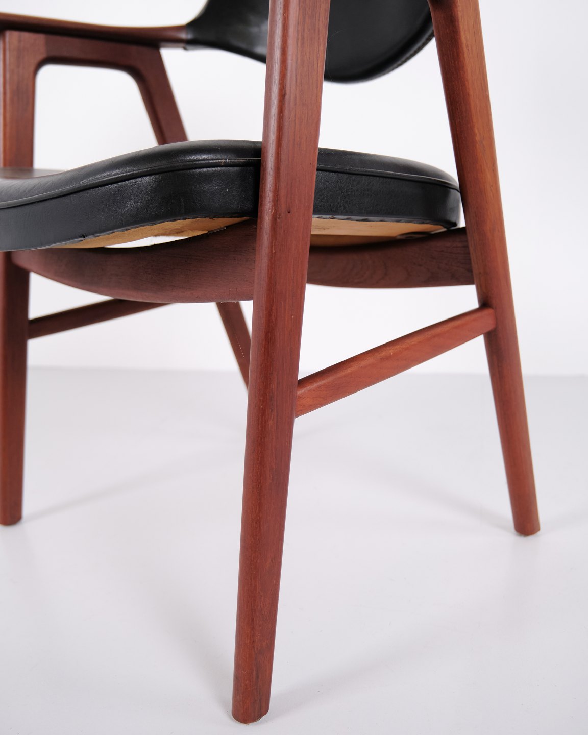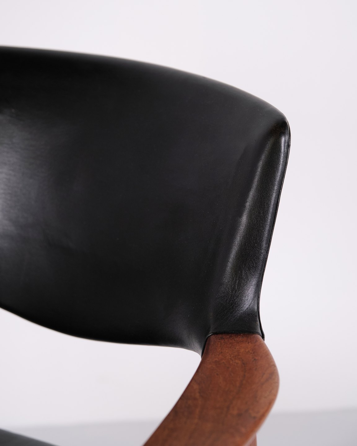 Erik Kirkegaard armchair model 43 in teak and black leather from Høng Stolefabrik. Danish design from the 1950s with an elegant design language.
