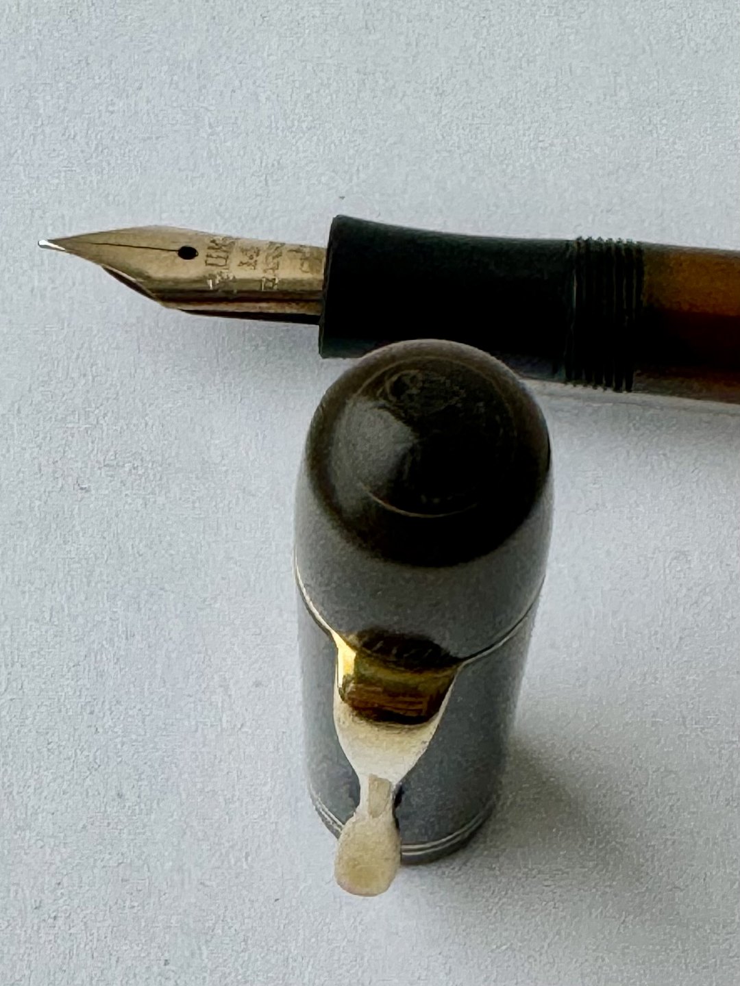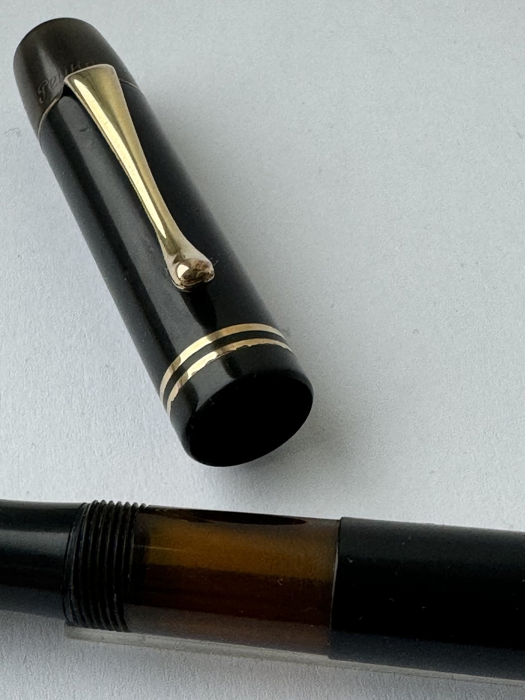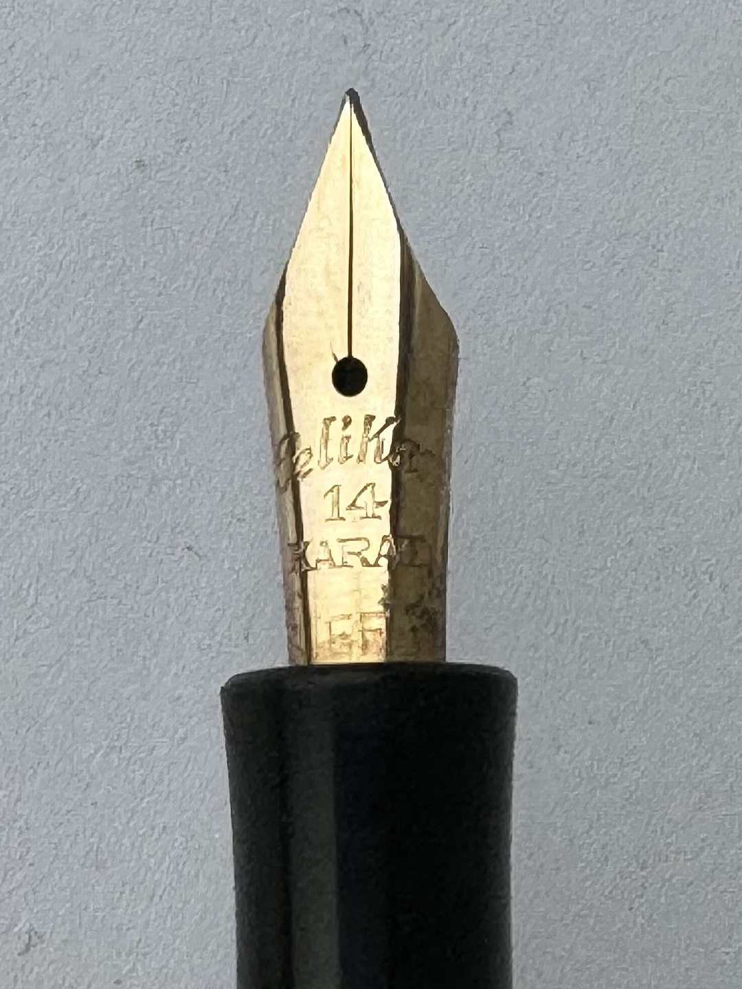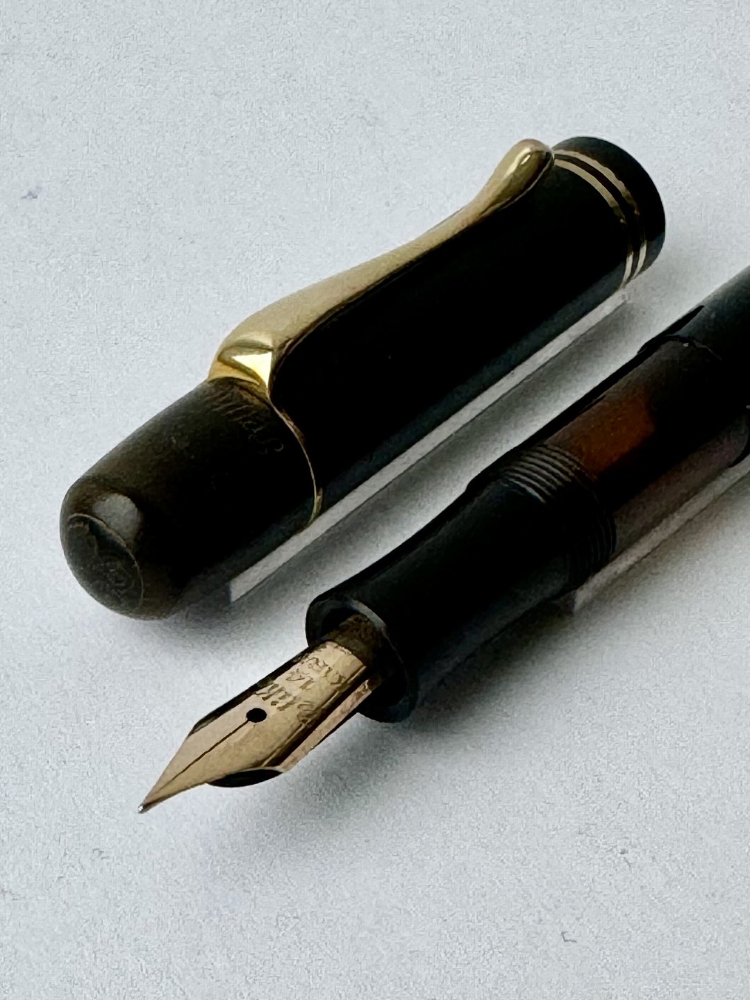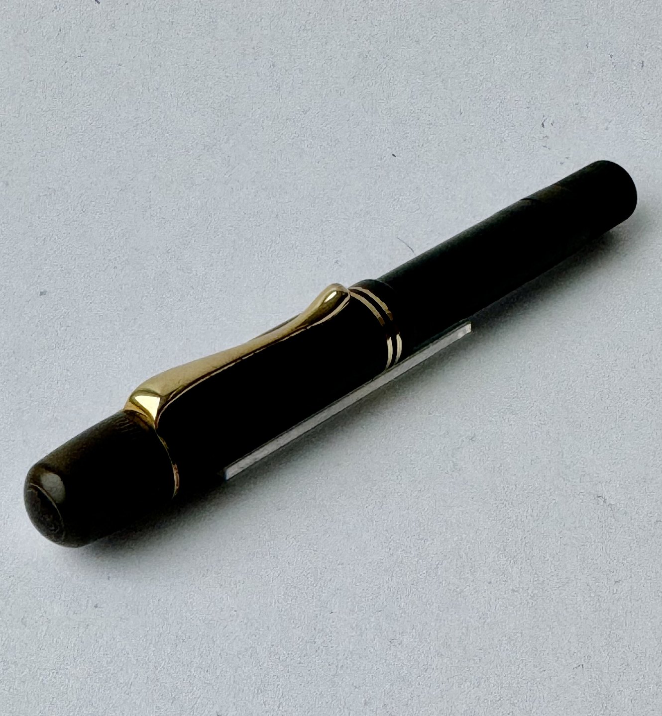 Black Pelikan 100 fountain pen made in Germany in the mid 1930s. Piston filler. In good condition with no damage or repairs. All parts original to this model including a 14 carat gold nib.