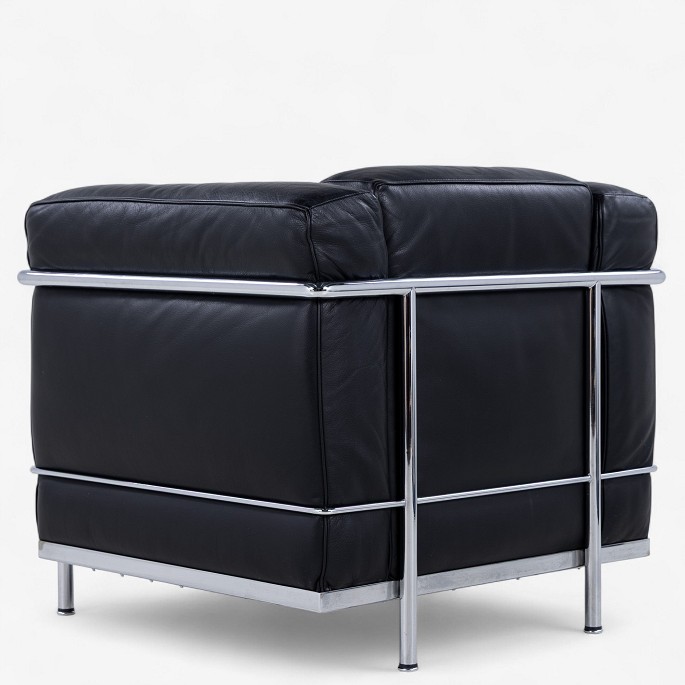 LC 2 - Armchair in original black leather with steel frame. Manufacturer's stamp.