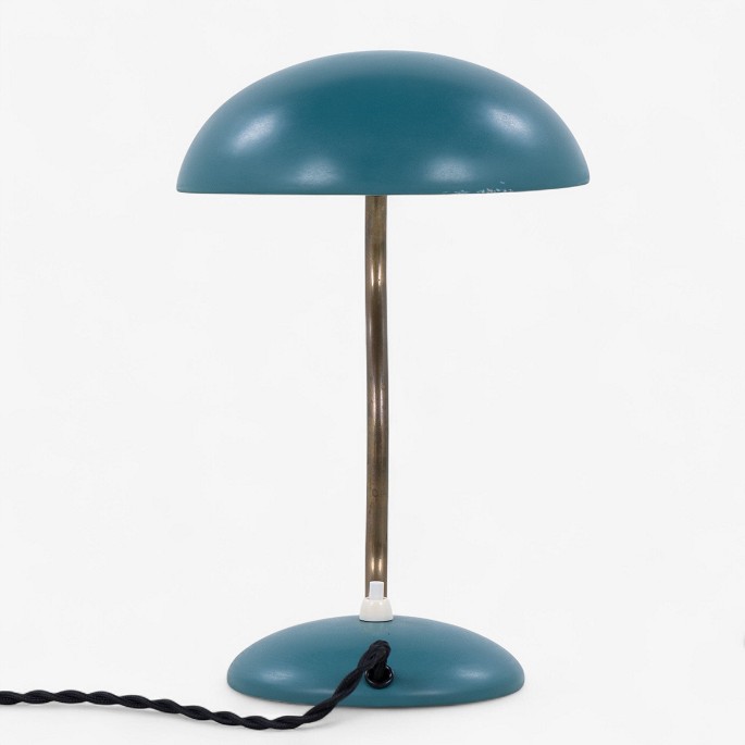 Model E1325 - Bordlampe i grønlakeret metal med justerbar arm i messing.