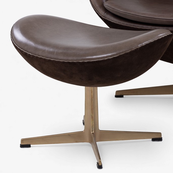 AJ 3316 - 'The Egg' armchair with stool in original dark brown Elegance leather and brown suede on a bronze frame. Anniversary model from 2008. Number 489/999.