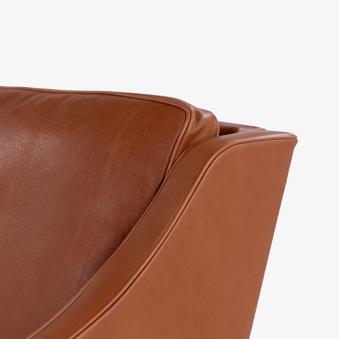BM 2207 - Newly upholstered armchair in cognac-colored aniline leather with white oiled legs.