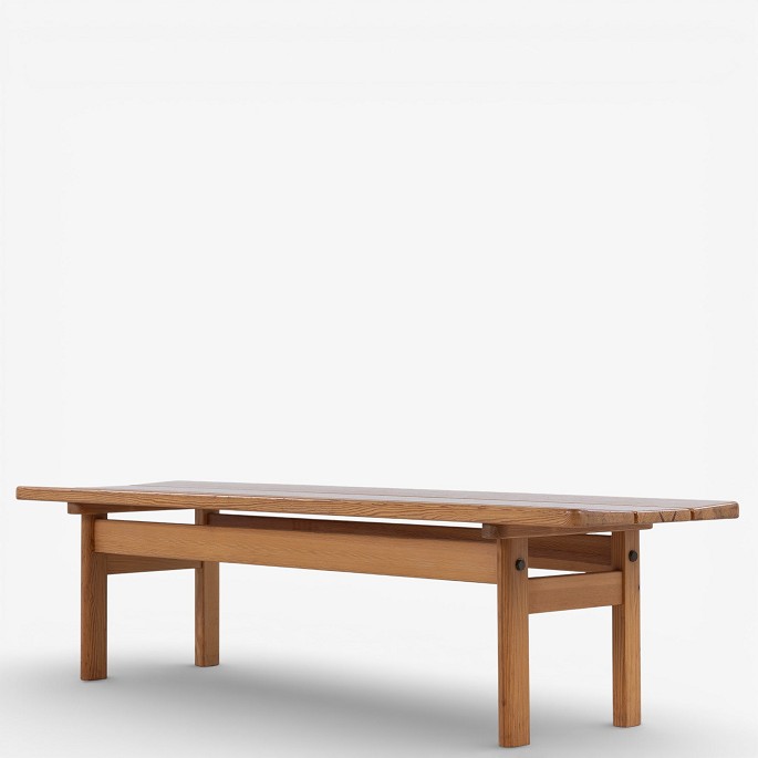 Bench in solid, varnished pine. Manufacturer's mark.