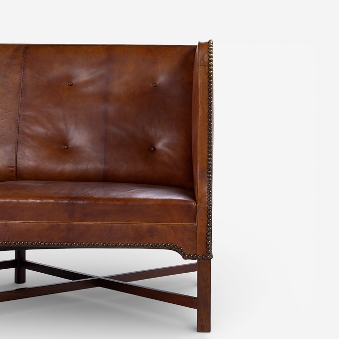 KK 4118 - 3-seater sofa in patinated niger leather on a cross-frame in Cuban mahogany. Designed in 1930.