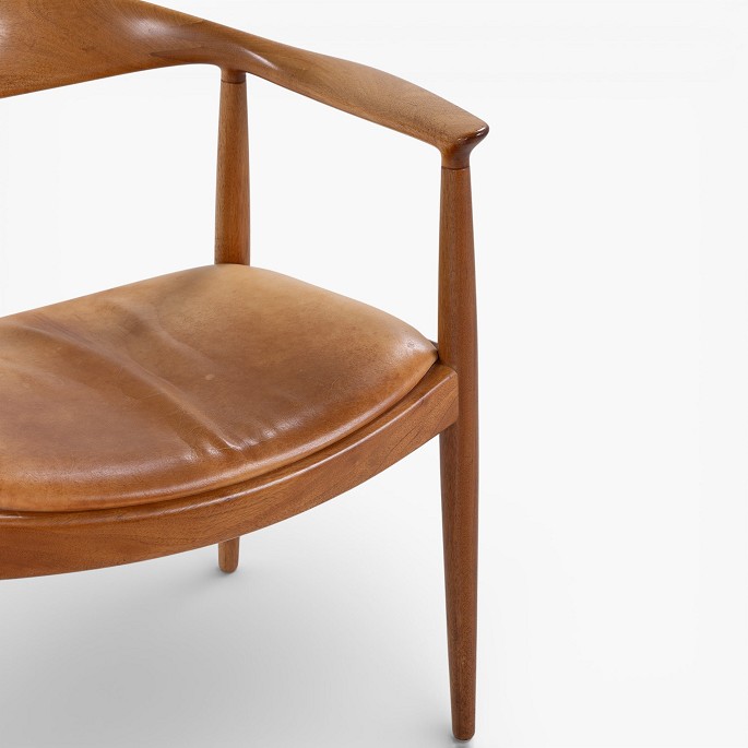 JH 503 - 'The Chair' armchair in mahogany with seat in patinated natural leather. Manufacturer's mark.
