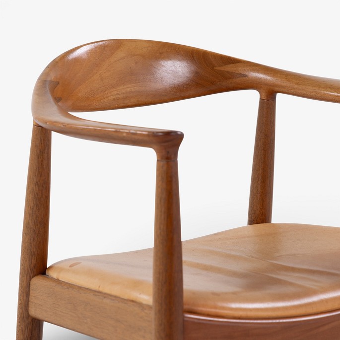 JH 503 - 'The Chair' armchair in mahogany with seat in patinated natural leather. Manufacturer's mark.