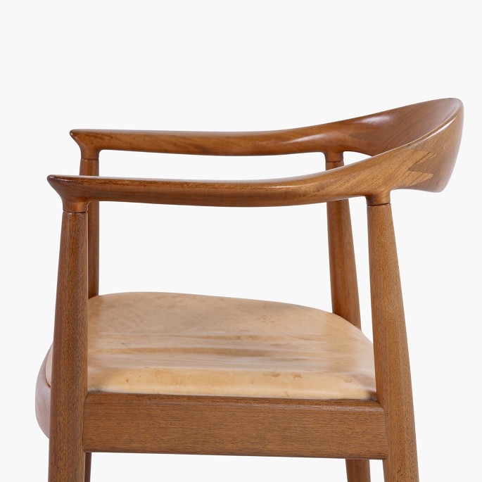 JH 503 - 'The Chair' armchair in mahogany with seat in patinated natural leather. Manufacturer's mark.