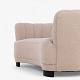 Newly upholstered 'Banana sofa' in 'Teddy' fabric (color: Nude).