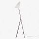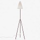Model 569 - 'Giraffen' floor lamp with a frame in patinated red lacquered metal and a white fabric shade.