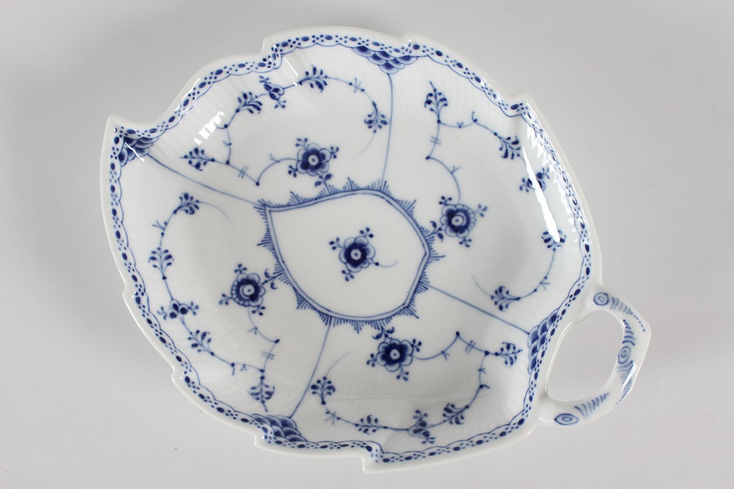 Royal Copenhagen Blue Fluted Half Lace Leaf shaped serving platter no. 1/549 With stamp from the period 1923-34 Length 26.5 cm Width 20 cm 1. quality - no chips or repair