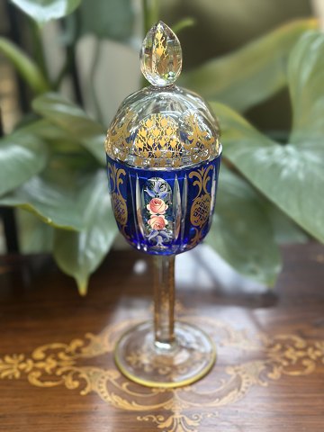 Bohemia crystal goblets with lids made of overflow glass, hand-cut lead crystal, enamel and gold, from the Rococo period Height 18 cm