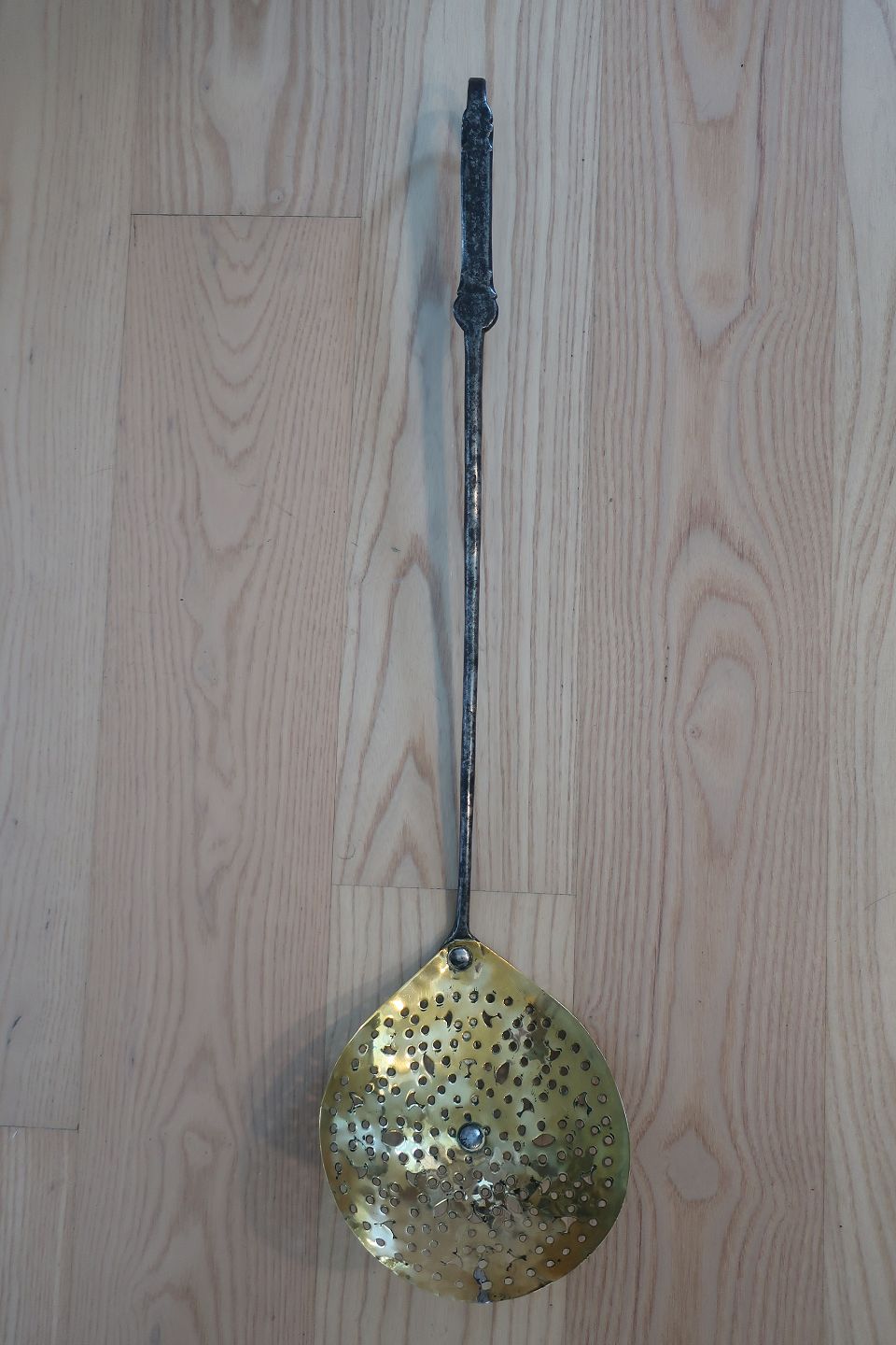 Löffel für das Entrahmen, um 1820 Mit schönem hand geschmiedetem Schaft Kein Stempel L.: 62cm In gutem Zustand, mit kleine Raparation Warennr.: KH15