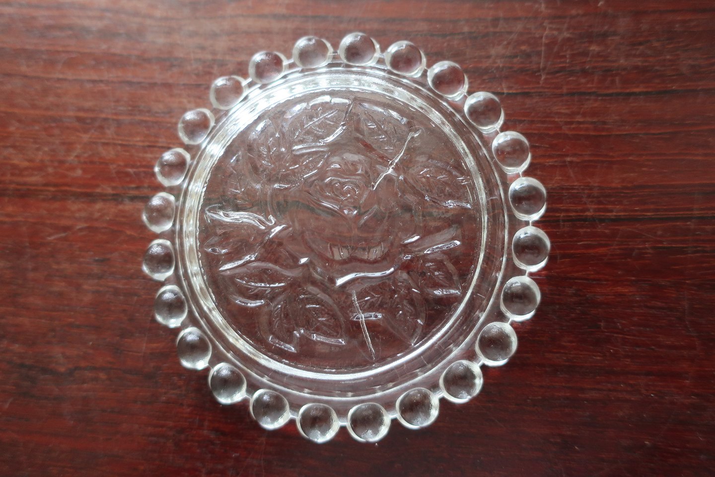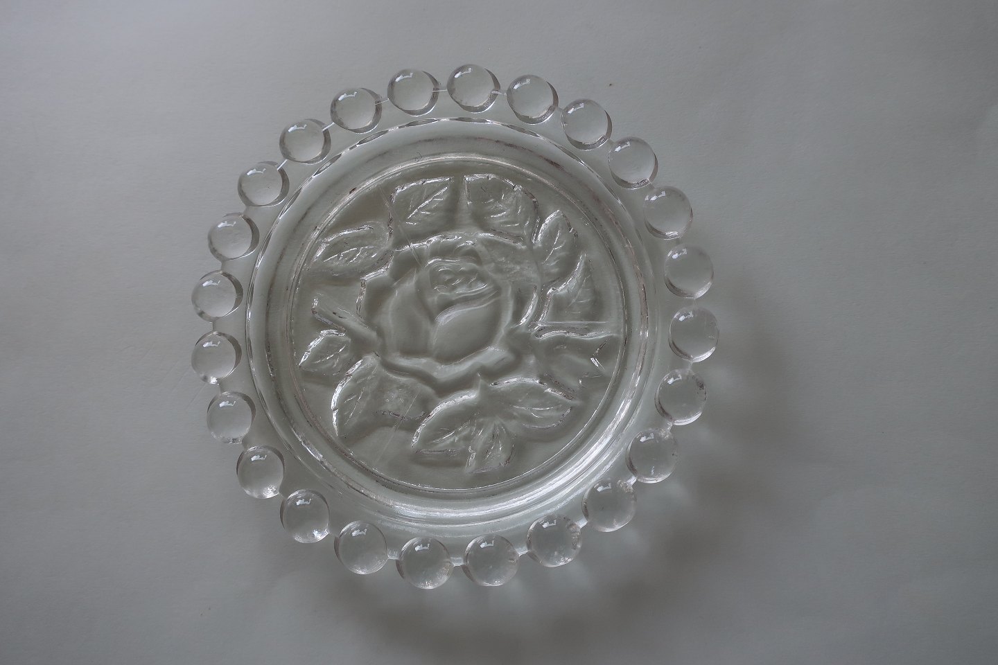 Alte coasters made of glass With beautiful decorations of a rose etc. Diam: 10,5cm From the 1930'years Is sold as a set of 2 items In a good condition Articleno.: KM1006