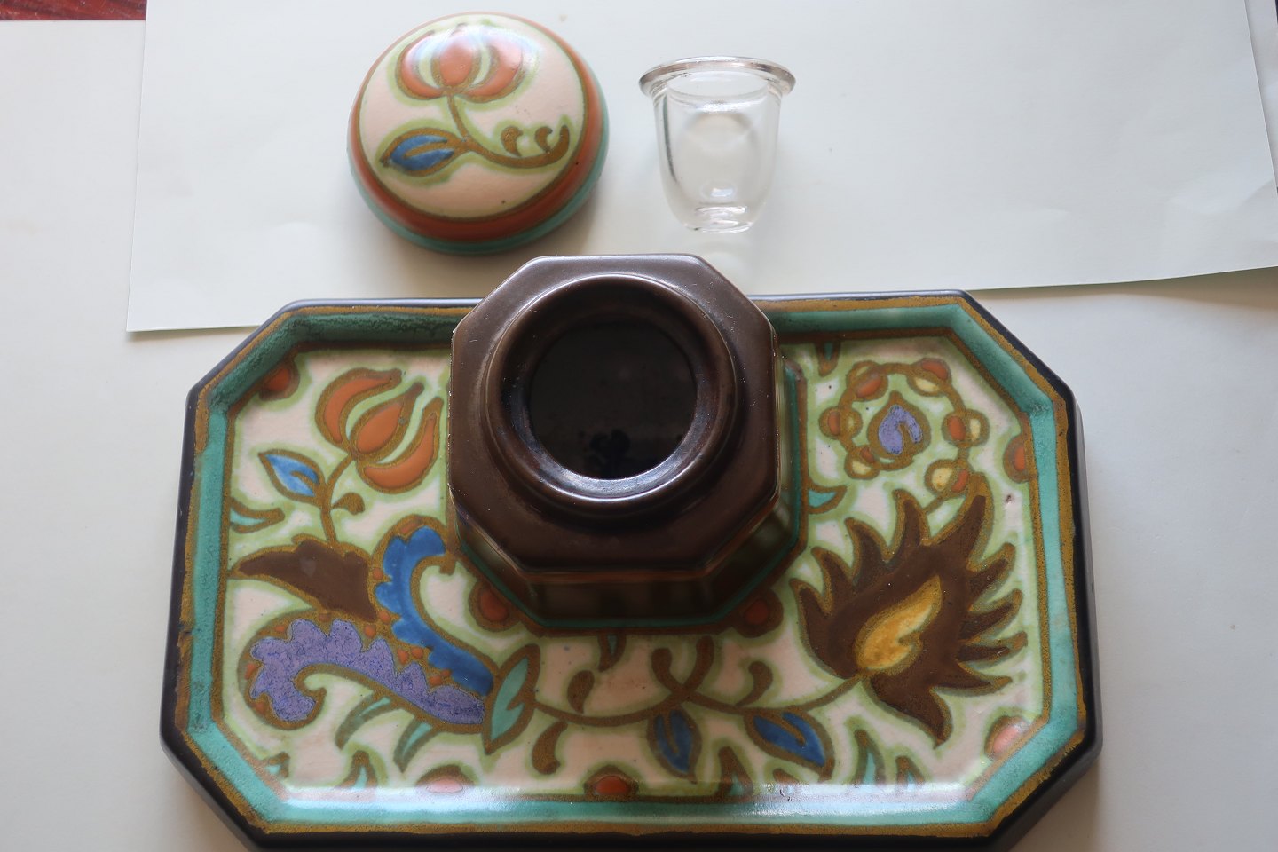 Antique inkpot with the lid and the ink "box"made of glass