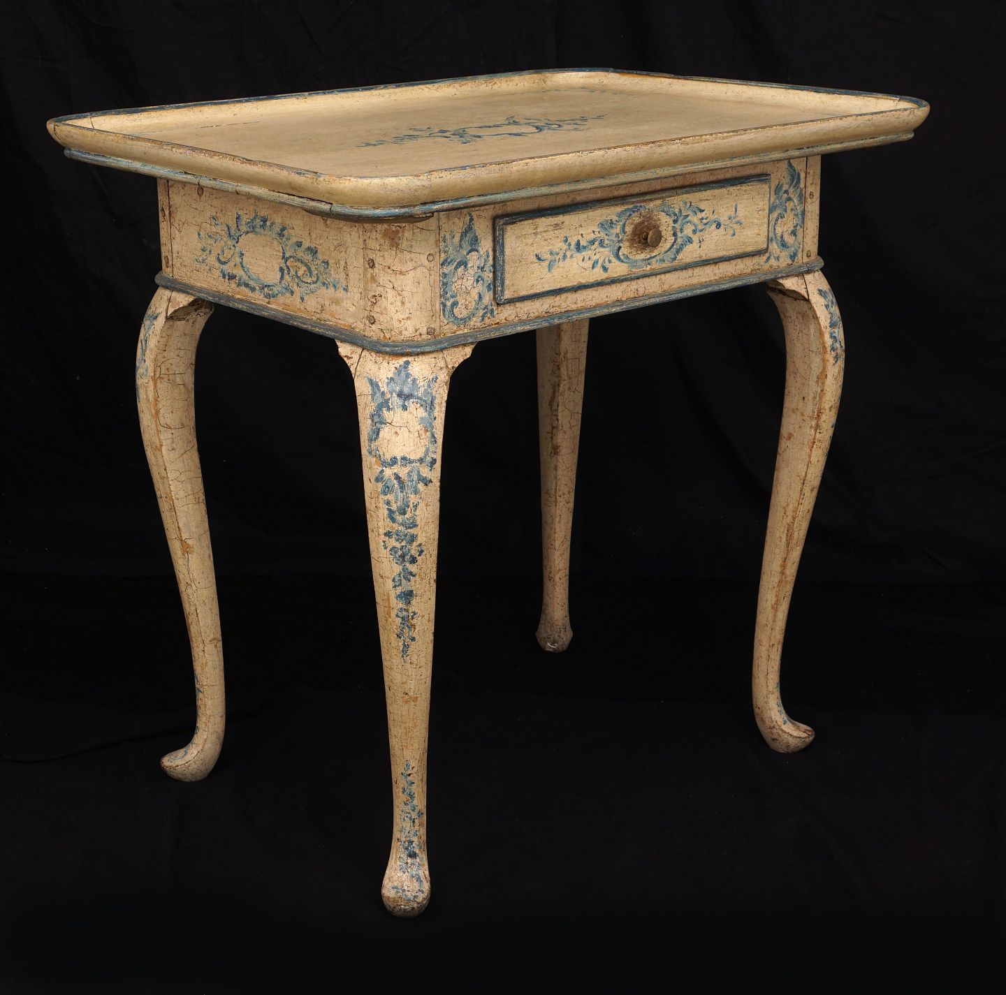An original decorated Rococo table with blue decorations Denmark circa 1760 H: 79cm. Top: 82x61cm Item number: 763A