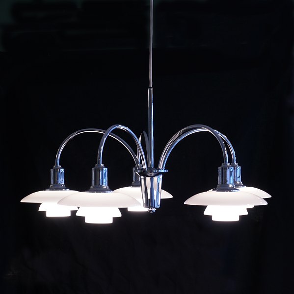 Poul Henningsen - A five light bombardement chandelier circa 1999. H: 40cm. D: 65cm