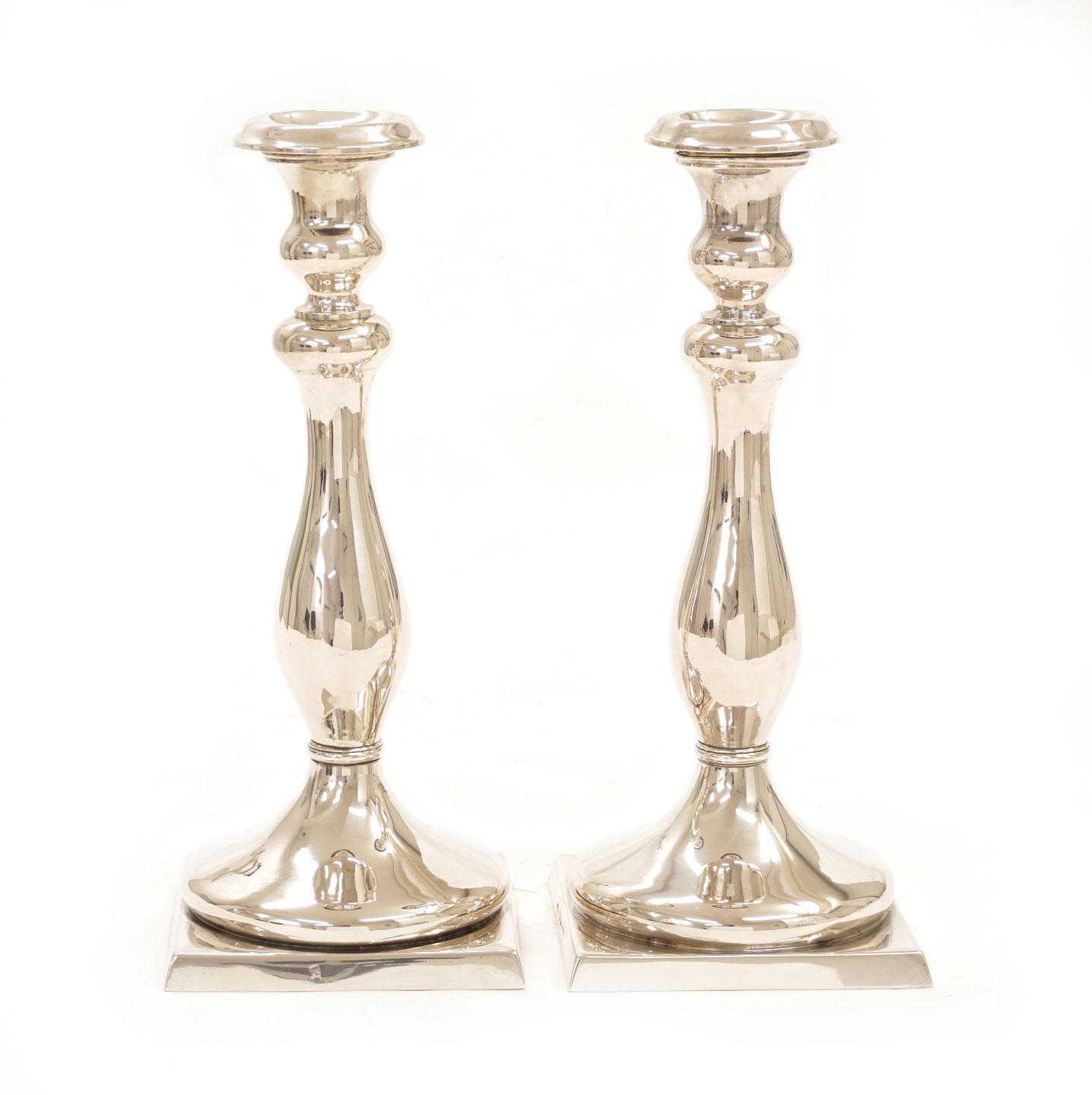 A pair of mid 19th century silver candlesticks. Circa 1840. H: 30cm