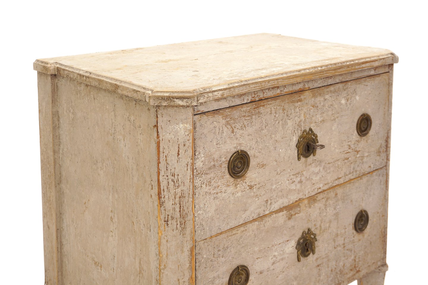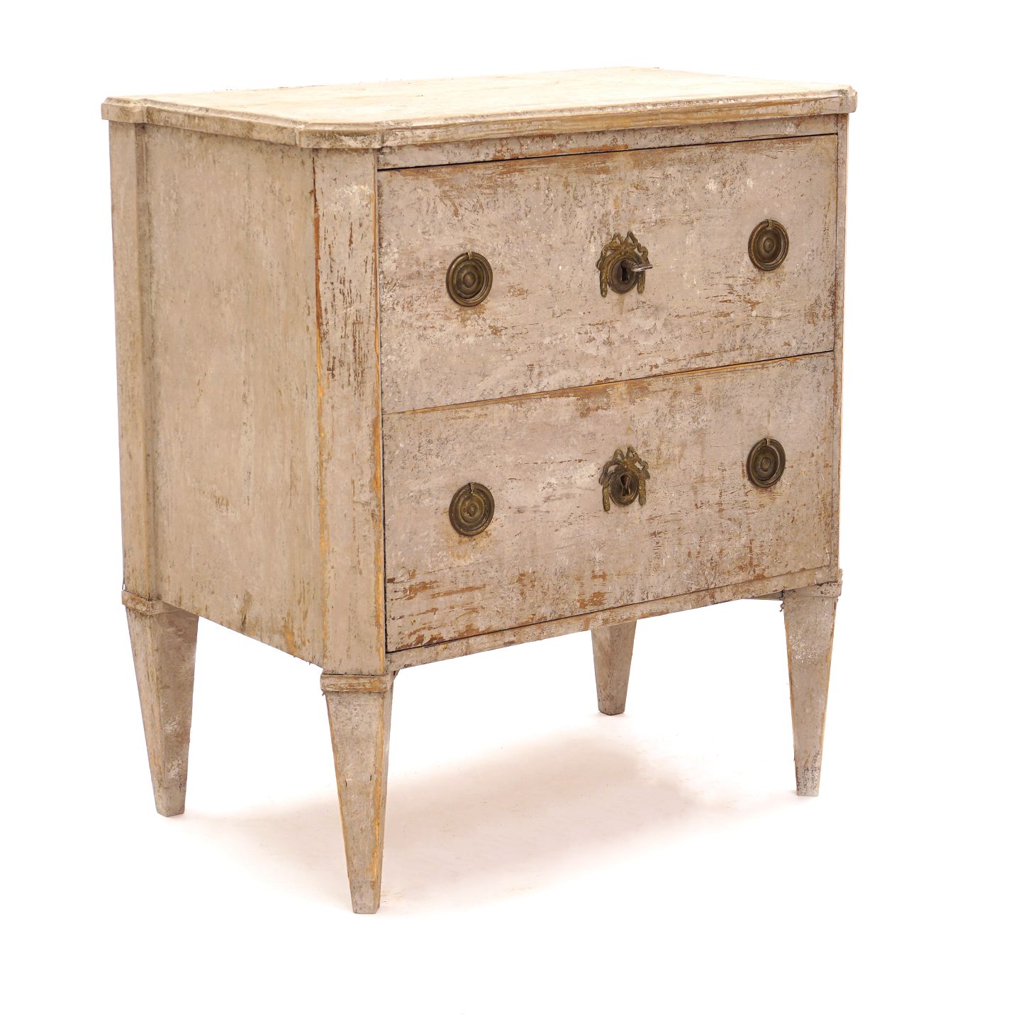 Light grey decorated Gustavian commode. Sweden circa 1780-1800. H: 79cm. W: 69,5cm. D: 45cm
