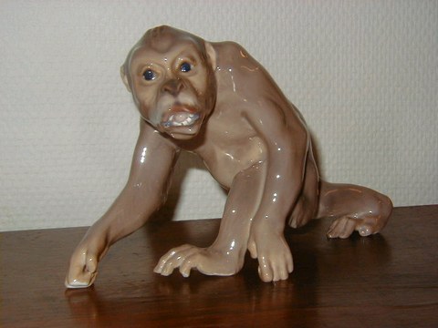 Rare Dahl Jensen Figurine, Monkey, decoration number 1018, factory third (because of a white spot on a leg to the back), length 21 cm.
