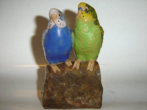 Kongelig Fajance Figur af to Undulater, web 5976