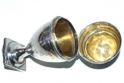 Hovedvands æg af sølv. Med graveringer, indvendig forgyldt. Empire 1800 tallet første halvdel Mester Christian Flyger Walter, Rudkøbing Størrelse 9,5 cm. Flot og velholdt stand.