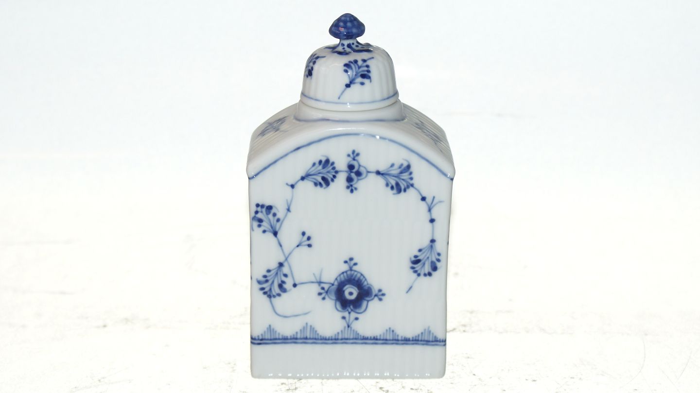 Kongelig Musselmalet Riflet, Tedåse Dekorationsnummer 1/262 1.sortering Højde 14,5 cm. Flot og velholdt stand