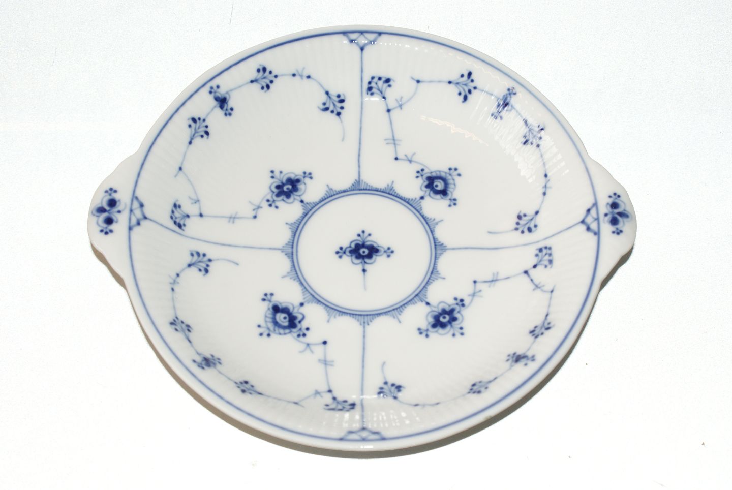 Royal Copenhagen Blue Fluted Plain, compote bowl with two handles. Produced between 1898-1923 Decoration number 1-475 1st quality Diameter 21.5 cm., Length 24 cm. Perfect condition
